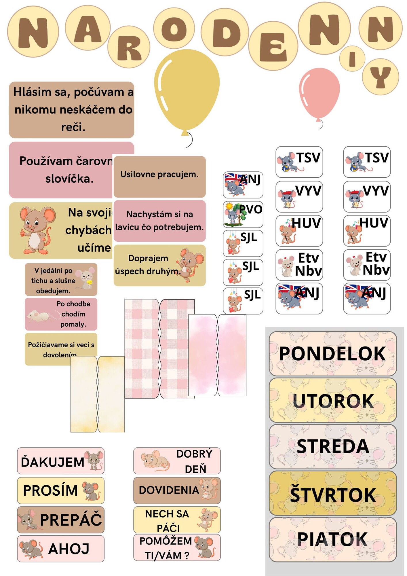 súbor na výzdobu triedy myšiek