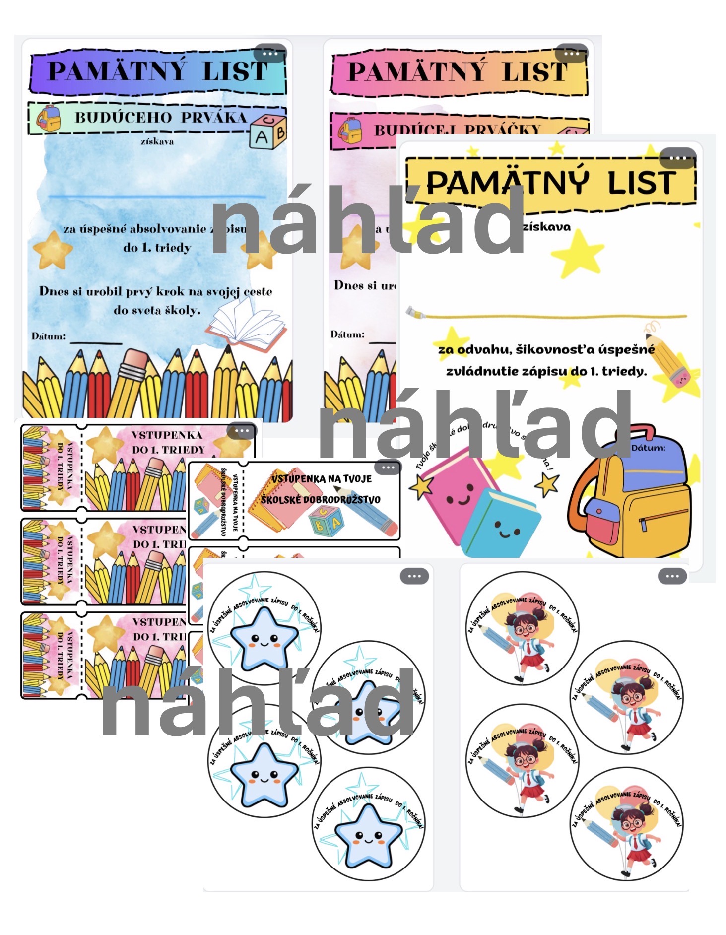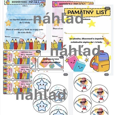 - 3 motívy vstupeniek do 1.triedy pre deti