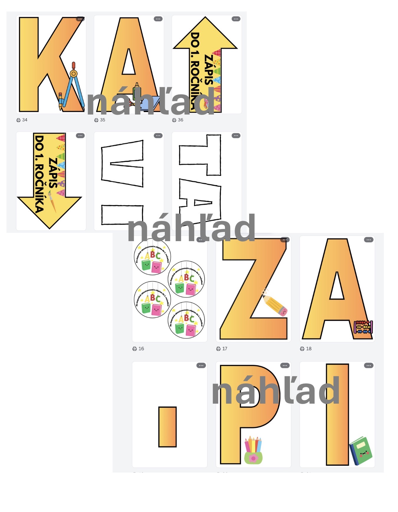 (dve písmená na A4, nadpis je pripravený tak aby sa vytlačil na farebné papiere - podľa potreby pedagóga)