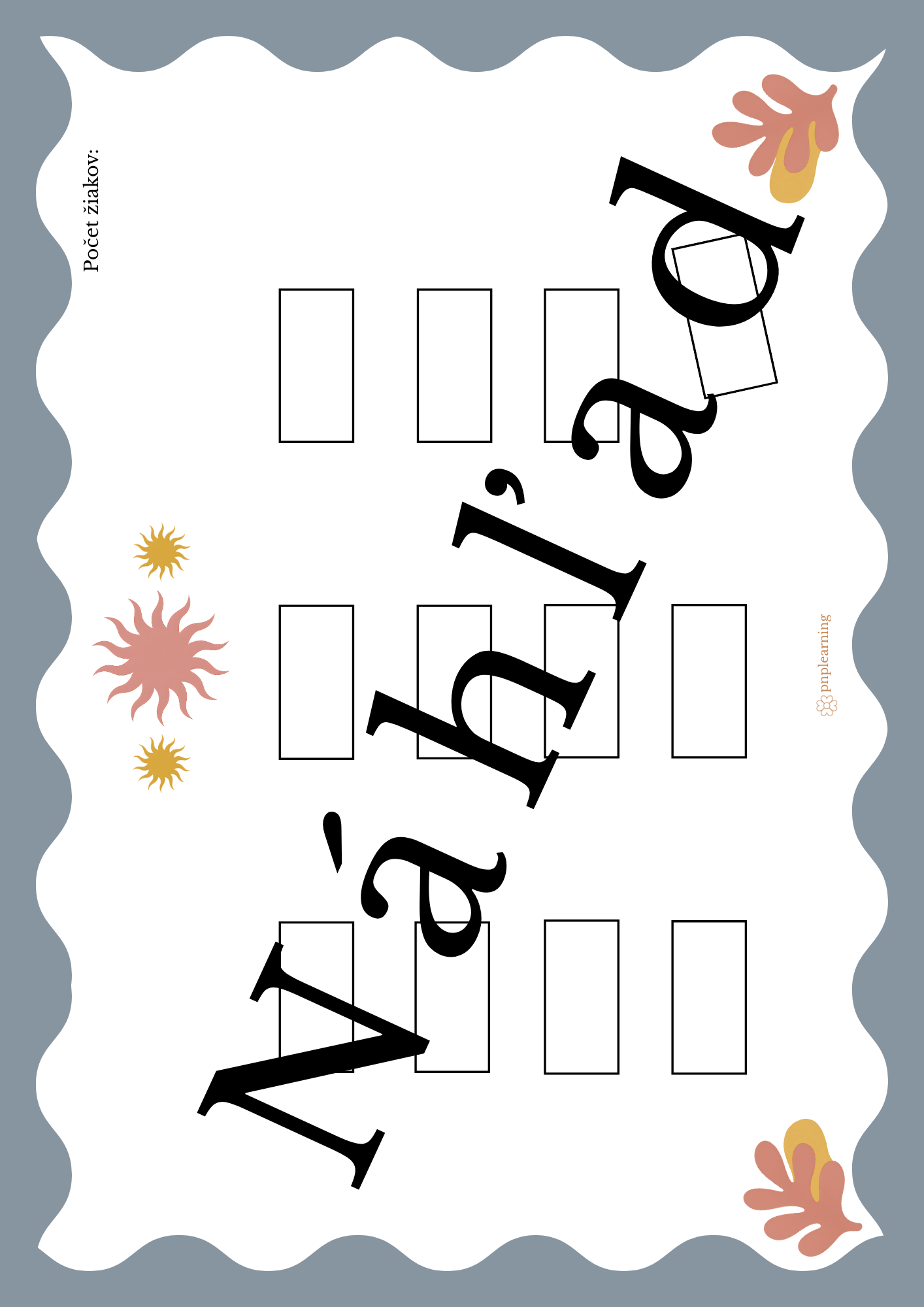 - K materiálu sú pripravené menovky, na ktoré si môžete napísať mená žiakov: buď pred zalaminovaním, alebo zalaminovať prázdne menovky a písať mená až na zalaminovaný povrch (môžete ich meniť podľa potreby).