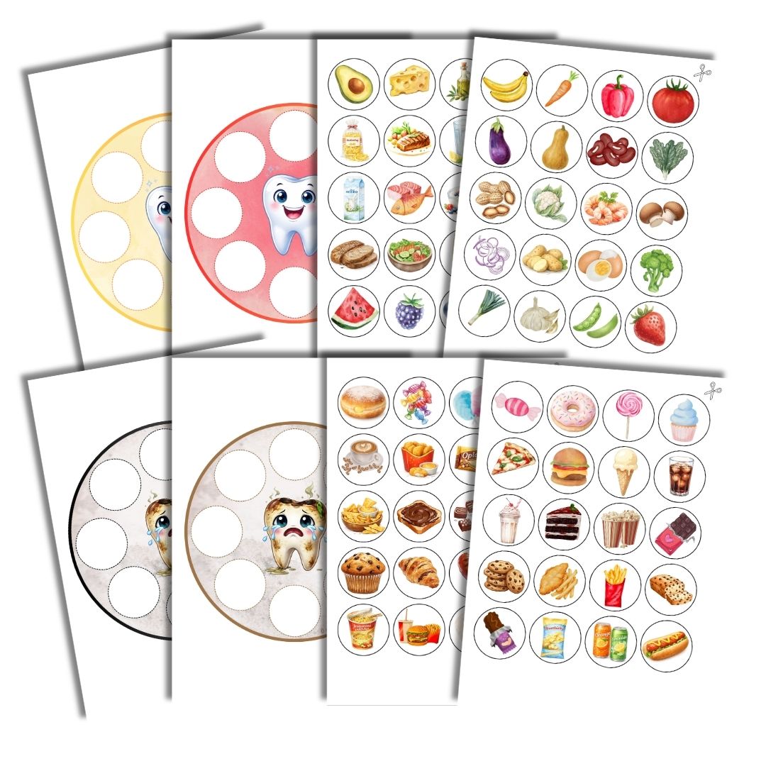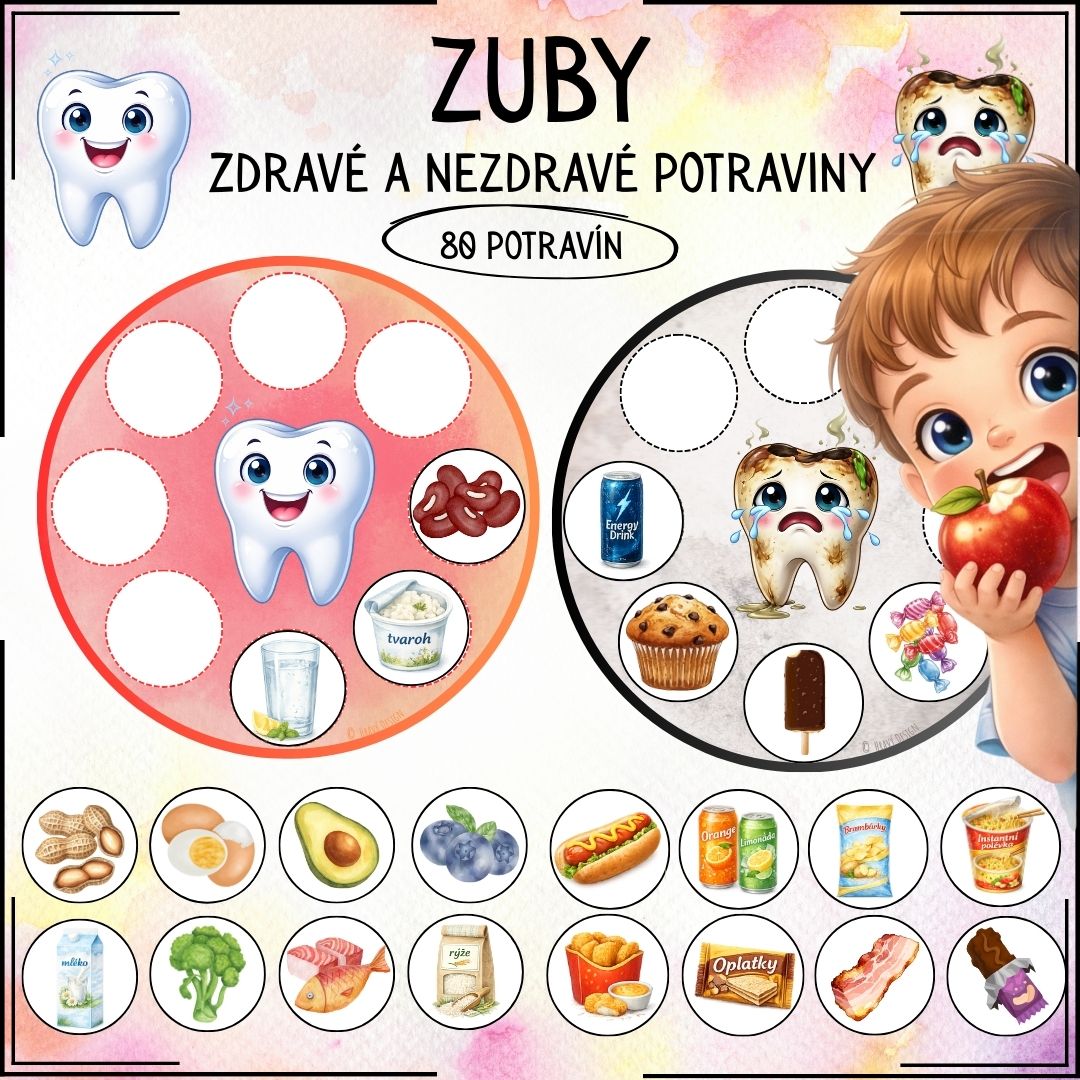 Súbor obsahuje prehľadné stránky na triedenie aj sadu obrázkových kartičiek. Aktivita je vhodná na skupinovú prácu v škôlke aj na domáce hranie – skvele sa hodí ako doplnok k téme ľudské telo, zdravie, výživa a dentálna hygiena.