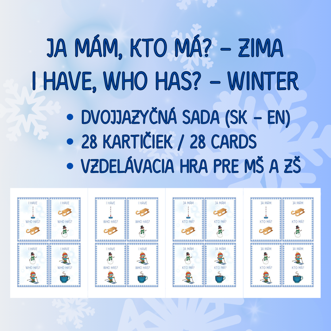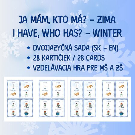 - 28 kartičiek s obrázkami zimných predmetov a aktivít