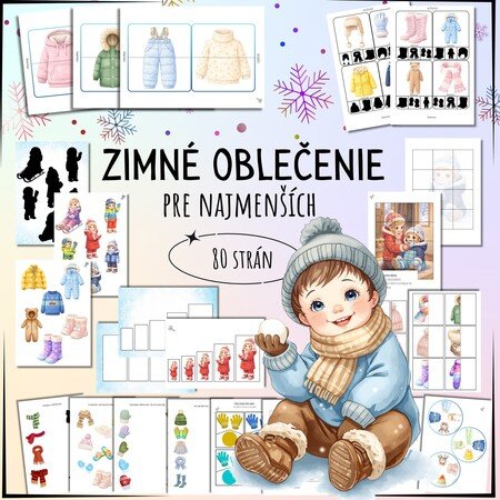 Súbor jednoduchých hier a pracovných listov na tému zimné oblečenie, určený pre malé deti. Aktivity podporujú samostatnú prácu, pozorovanie a základné triedenie prostredníctvom hravých úloh s obrázkami.