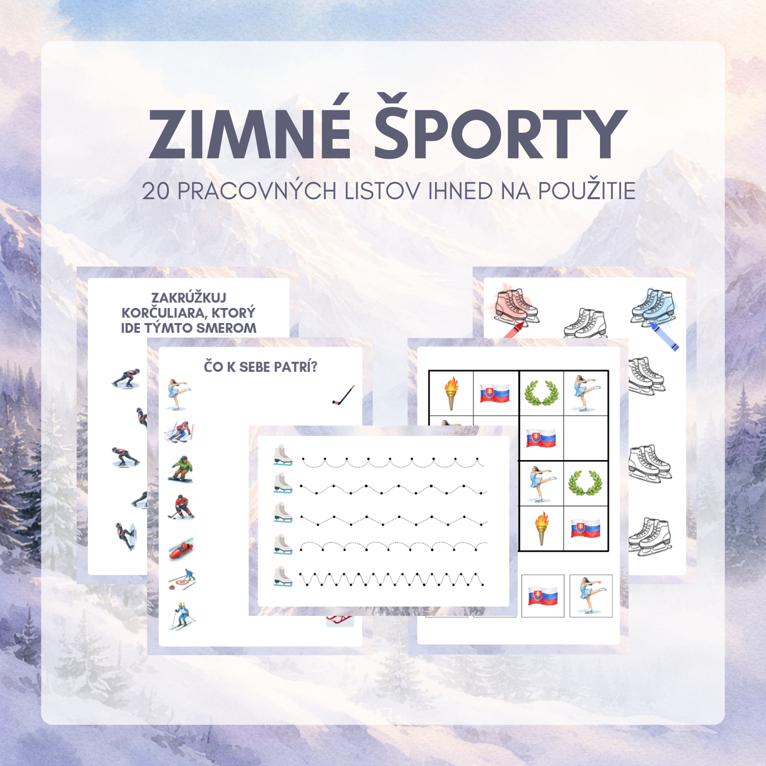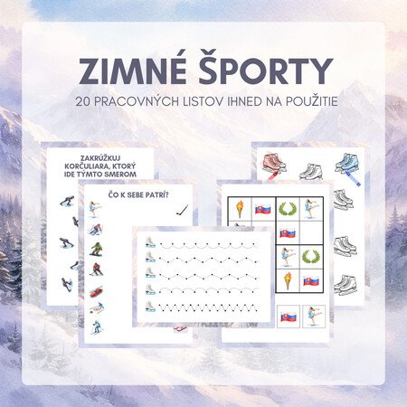 Materiál je zameraný na tému zimné športy. Táto téma je deťom priblížená pomocou pracovných listov, ktoré stačí iba vytlačiť a použiť.