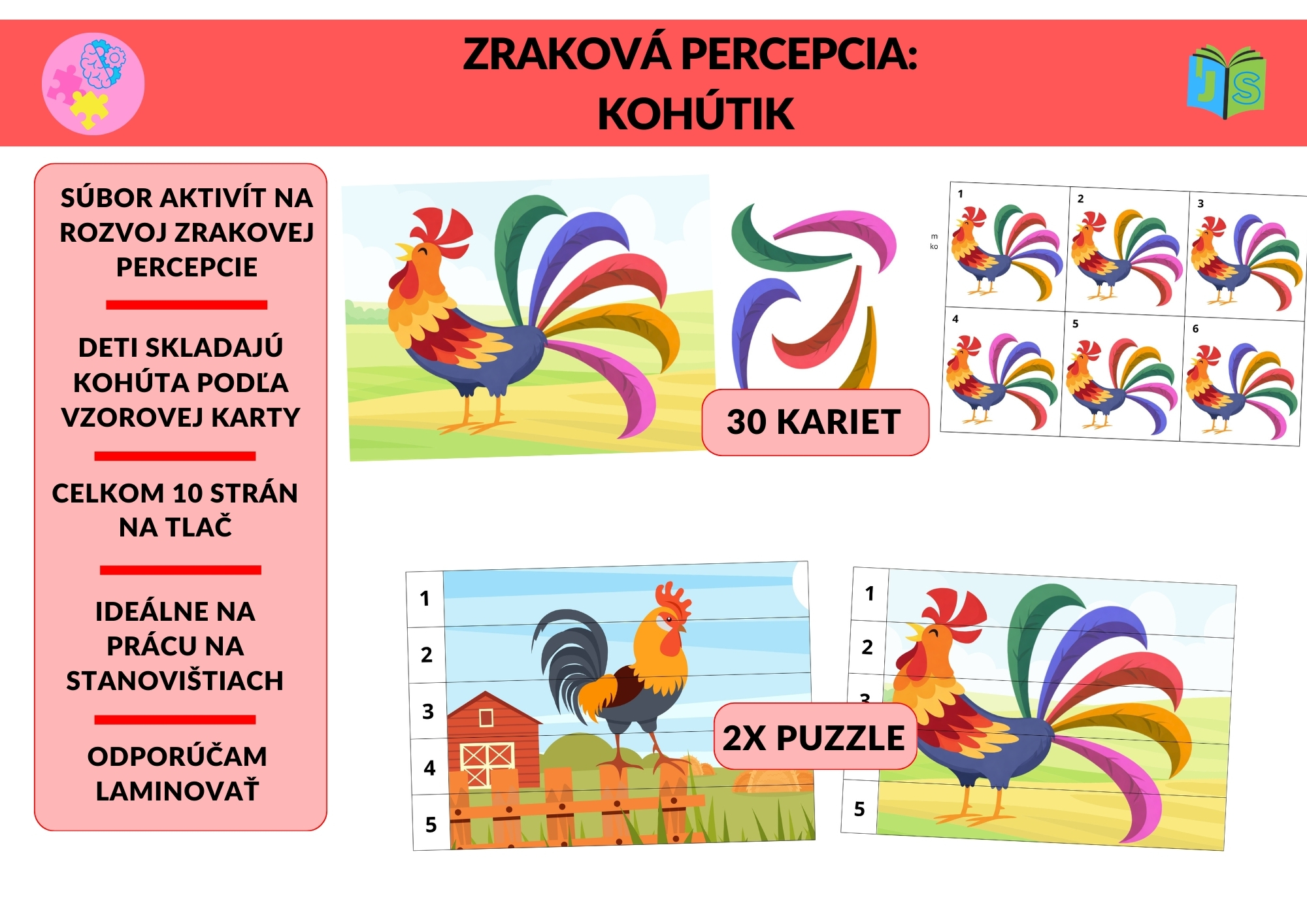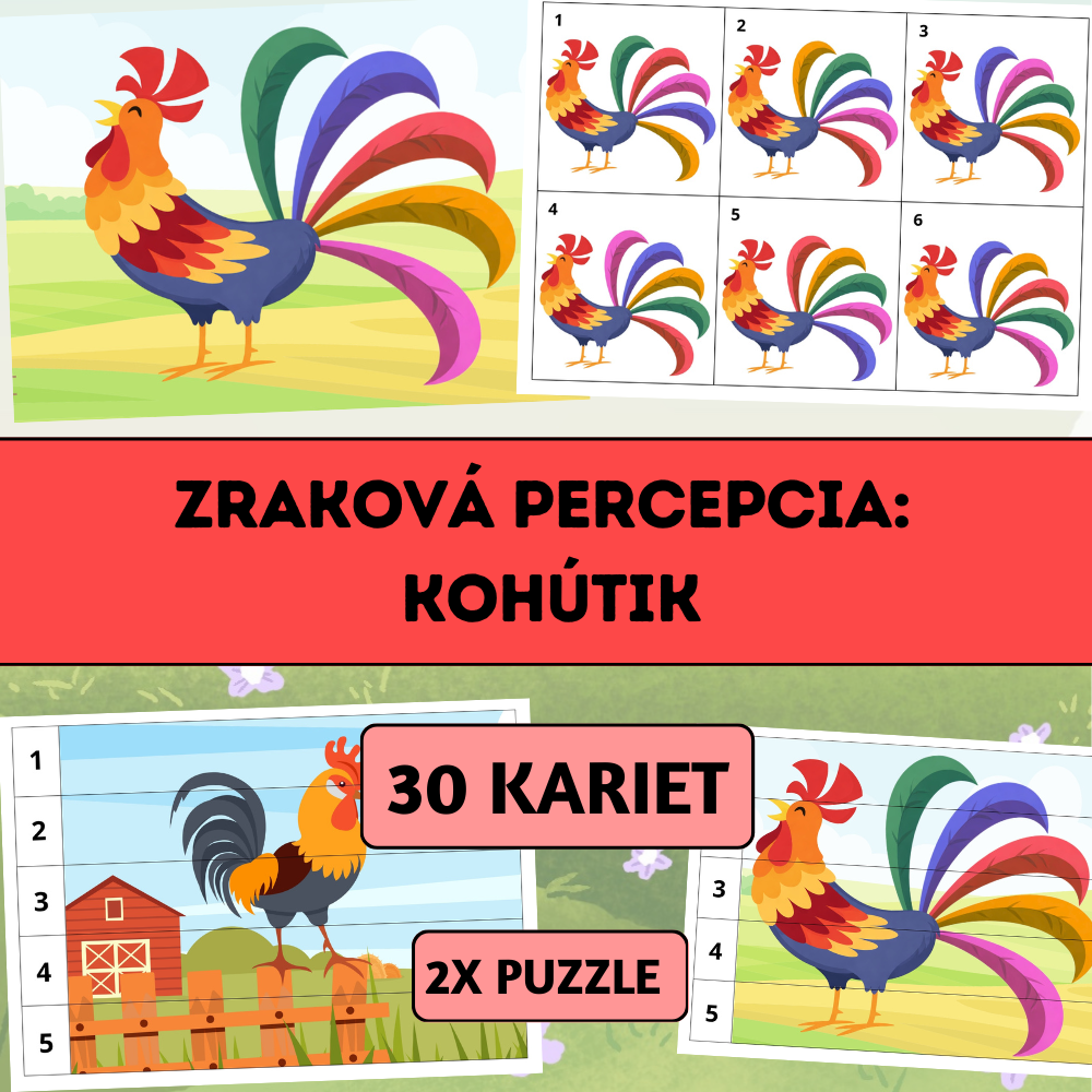 Zraková percepcia: Kohútik je hravý vzdelávací materiál zameraný na rozvoj zrakového vnímania, pozornosti, priestorovej orientácie a vizuálnej pamäti.