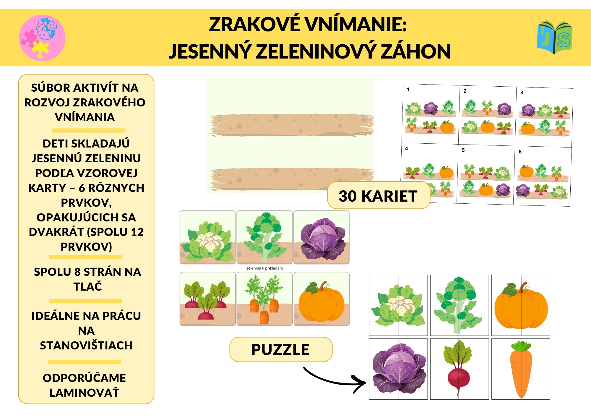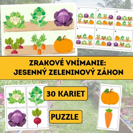 Súbor Zrakové vnímanie: Jesenný zeleninový záhon je zameraný na rozvoj zrakového vnímania, koncentrácie pozornosti, vizuálnej pamäti a priestorovej orientácie.