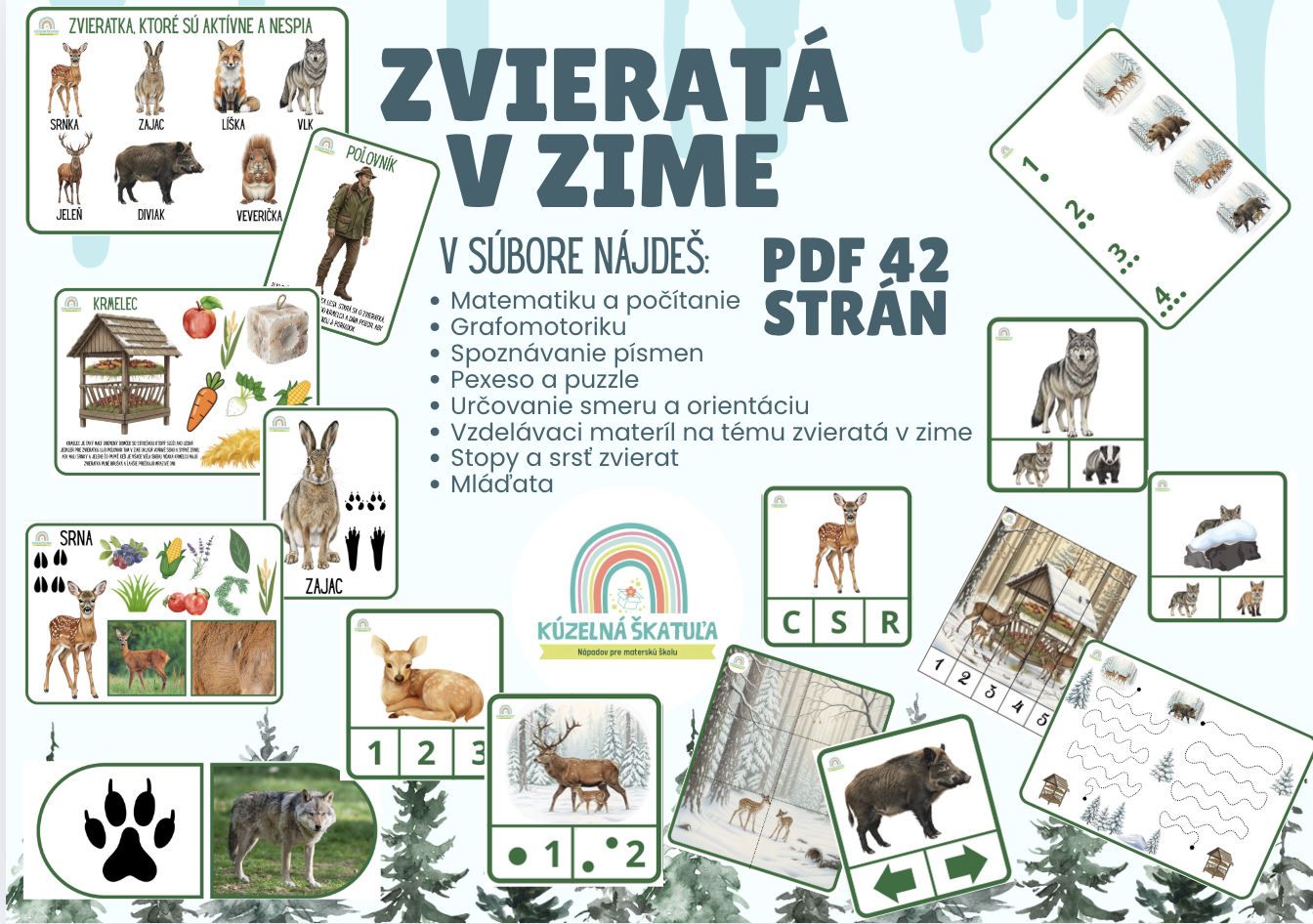 Pripravila som pre vás a obsiahly vzdelávací súbor na tému Zvieratá v zime. Je to skvelý pomocník, ako deťom priblížiť život v prírode počas chladných mesiacov hravou a pútavou formou.