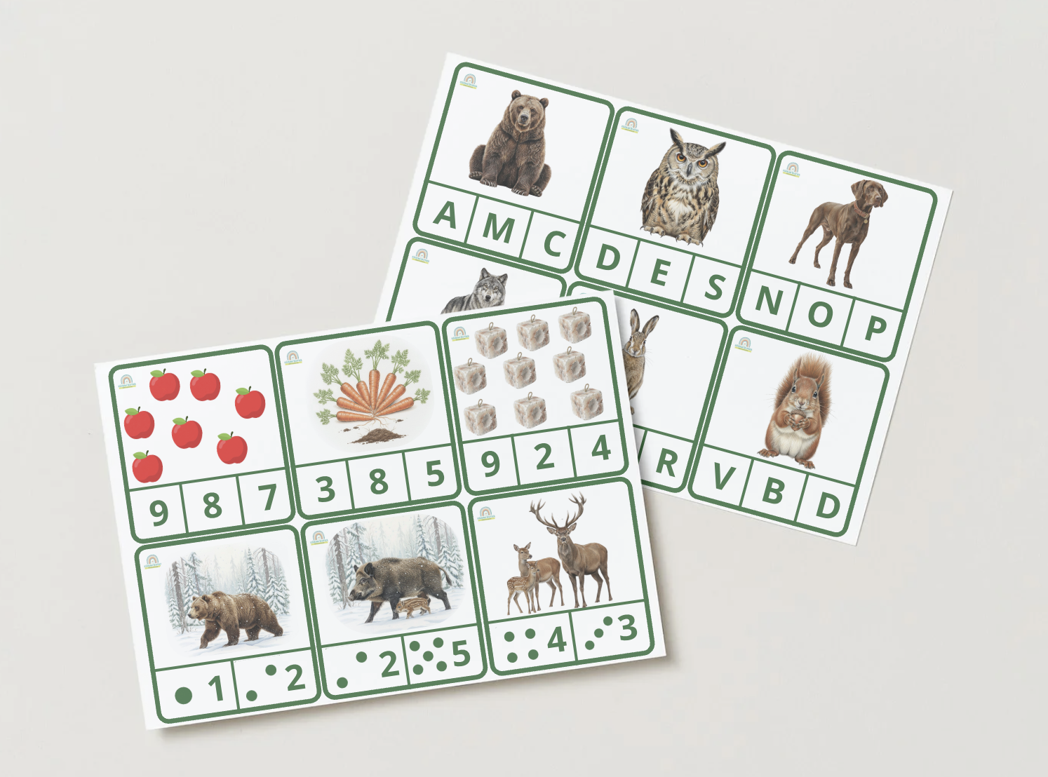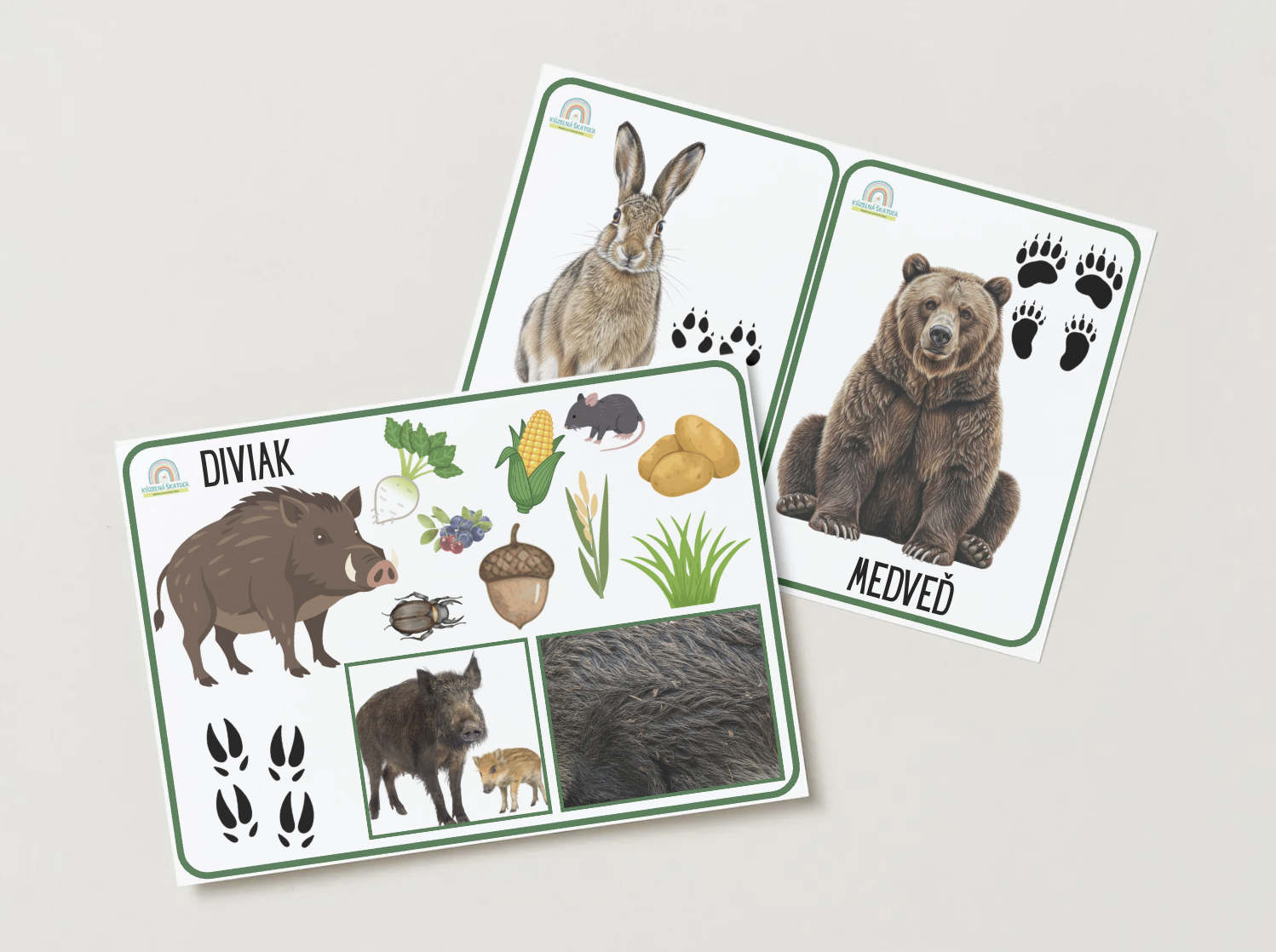 - Vzdelávací materiál: Prehľadné kartičky o tom, ktoré zvieratká sú aktívne, čo jedia a ako vyzerá krmelec.