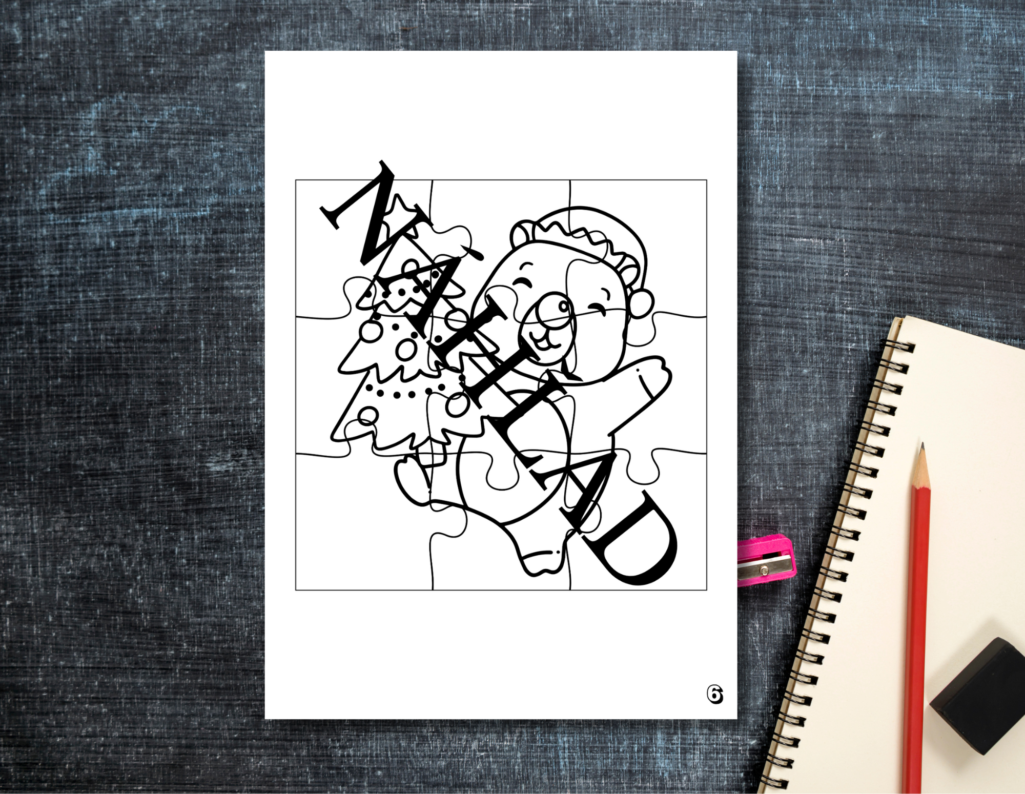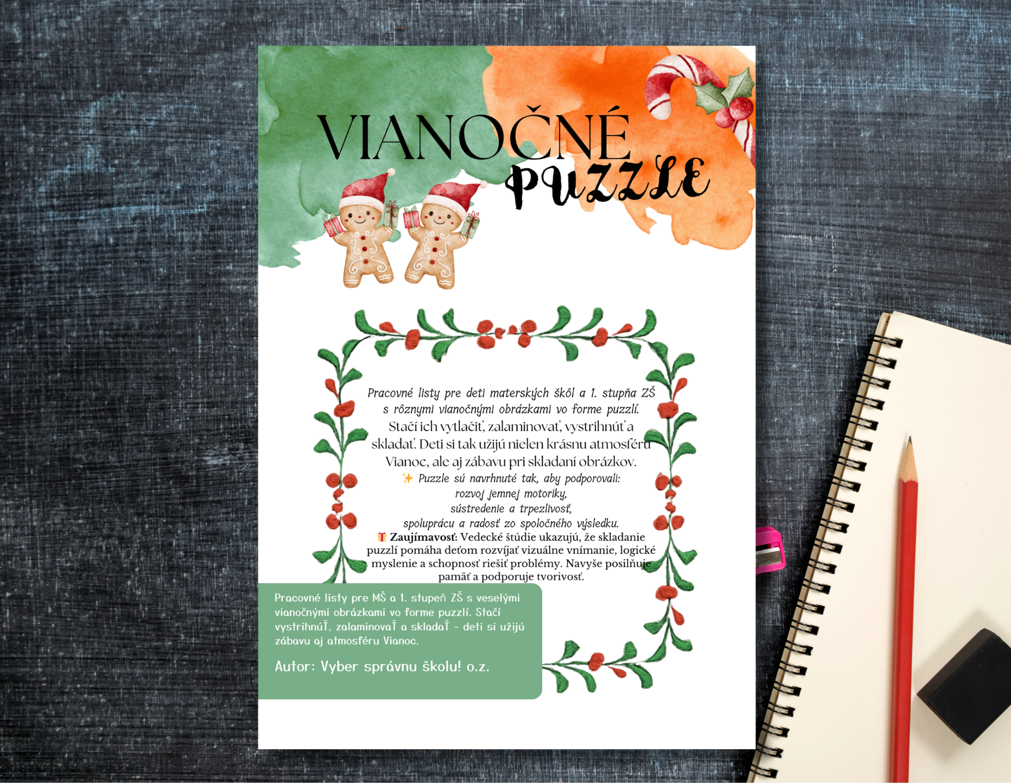 Pracovné listy pre MŠ a 1. stupeň ZŠ s veselými vianočnými obrázkami vo forme puzzlí. Stačí
