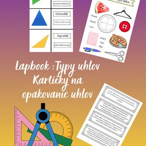 Materiál tvorí: Lapbook (Typy uhlov) a kartičky na aktivitu. Aktivita s kartičkami je cielená na opakovanie učiva (typy