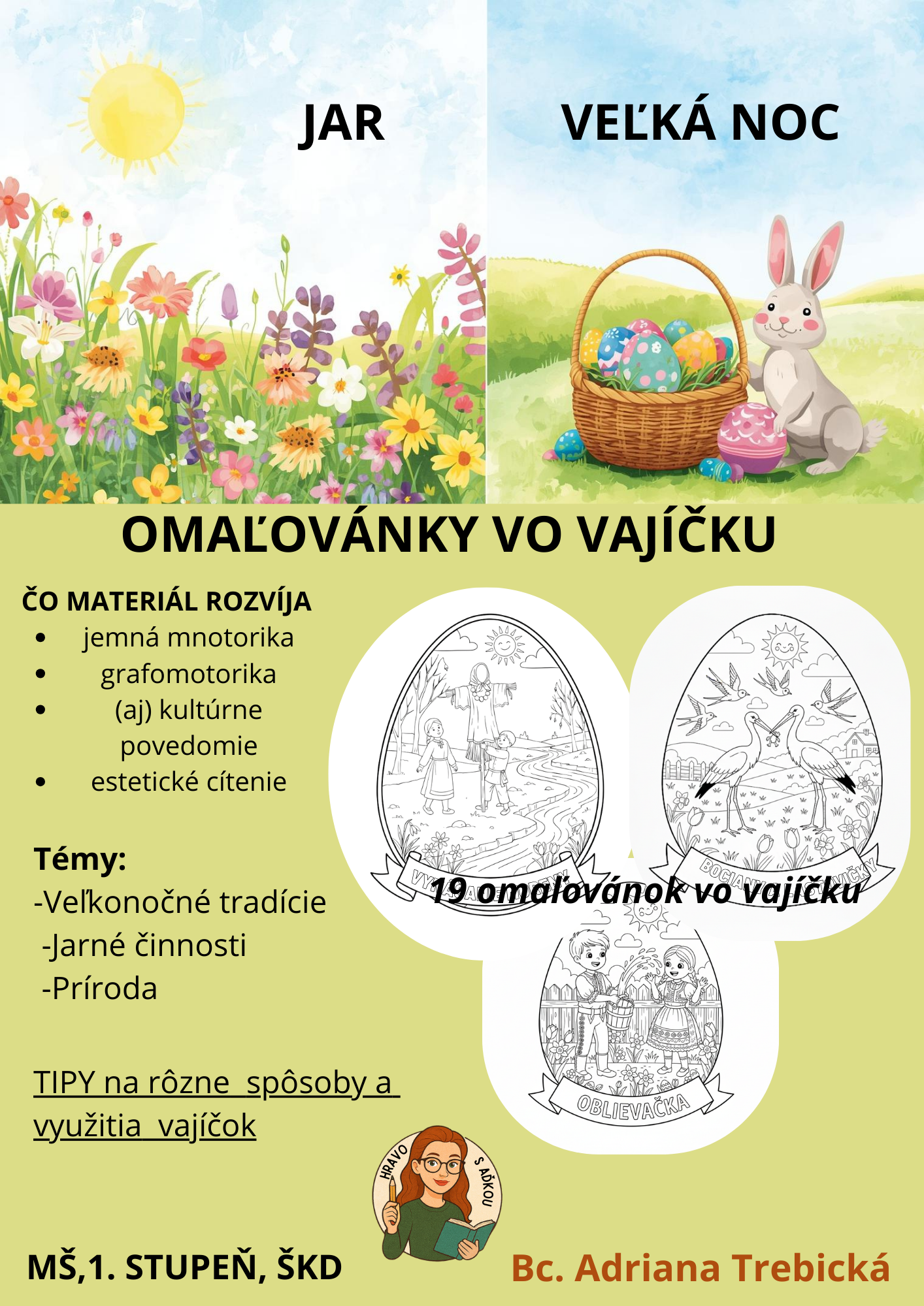 Tematické jarné a veľkonočné omaľovánky ukryté v tvare vajíčka, ktoré prepájajú tvorivosť, tradície a jemnú motoriku do jednej hravej aktivity.
