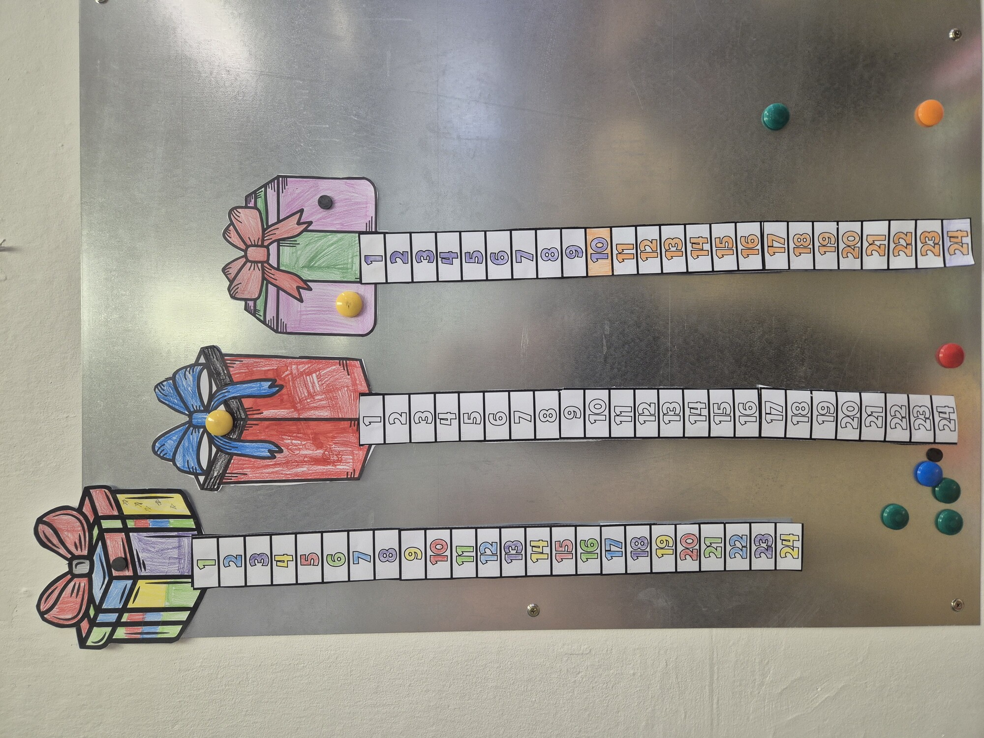 Tento materiál je určený na počítanie dní do Vianoc – funguje ako jednoduchý adventný kalendár. Dá sa využiť spoločne v triede, ale aj samostatne pre každého žiaka. Ak chcete, aby mal každý žiak vlastný odpočet, je potrebné vytlačiť všetky strany v počte zodpovedajúcom počtu detí v triede. Obrázok stromčeka či darčeku odporúčam vytlačiť na tvrdší papier, aby sa dal pekne vyfarbiť vodovými farbami. Ak sa deti rozhodnú použiť pastelky alebo fixky, postačí aj obyčajný kancelársky papier.