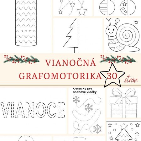 PDF: 30 grafomotorických cvičení + 30 vianočných omaľovaniek 🎁❄️