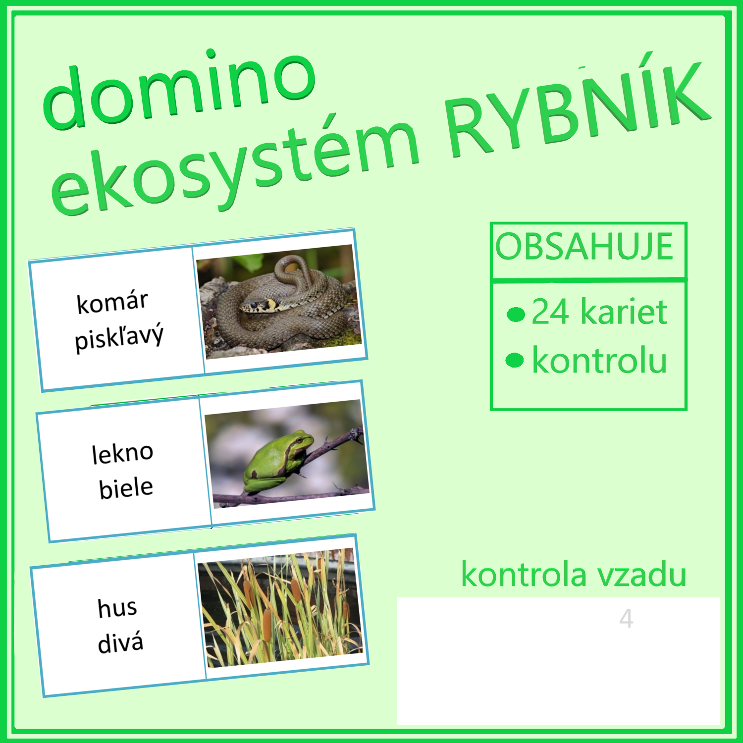 Obľúbená aktivita vhodná na komplexné precvičenie organizmov, ktoré žijú v rybníku a blízko. Obsahuje rastliny aj živočíchy. Názvy sú napísané vrátane rodového prívlastku (napr. komár piskľavý). Celkom 27 kariet s kontrolou zozadu. Žiaci si jednak fixujú, čo žije a rastie v rybníku a blízko a jednak sa aj naučia druhy spoznať a pomenovať. Materiál je nachystaný na tlač bez zbytočných okrajov medzi kartičkami.