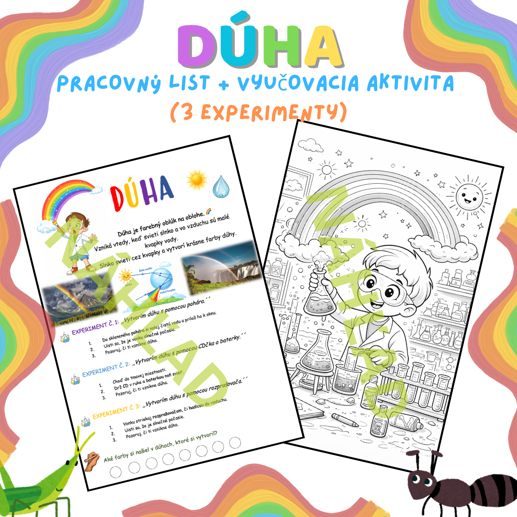 Tento pracovný list je zameraný na tému dúhy a hravou formou približuje deťom, ako dúha vzniká.