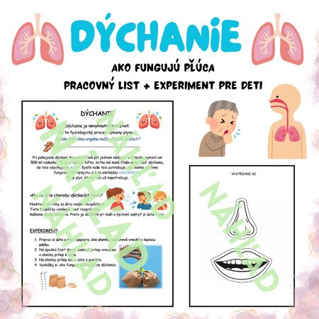 Deti sa dozvedia, čo sa deje pri nádychu a výdychu, akú úlohu má kyslík a oxid uhličitý, a ako sa môžu šíriť choroby dýchacích ciest. Súčasťou materiálu je aj jednoduchý experiment, vďaka ktorému si deti prakticky vyskúšajú, ako fungujú pľúca.
