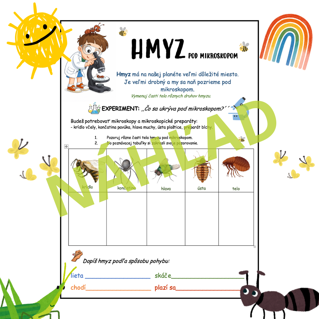 Tento pracovný list je zameraný na objavovanie sveta hmyzu prostredníctvom pozorovania pod mikroskopom.
