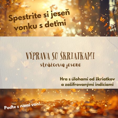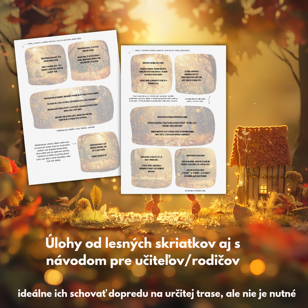 Hra je aj s návodom, deti majú plniť rôzne úlohy v jesennej prírode, úplne ideálne v lese. Za každú splnenú úlohu dostane skupina indíciu, ktorá je zašifrovaná. Na konci dostanú kľúč k šifre a rozlúštia si škriatkovský vtip.