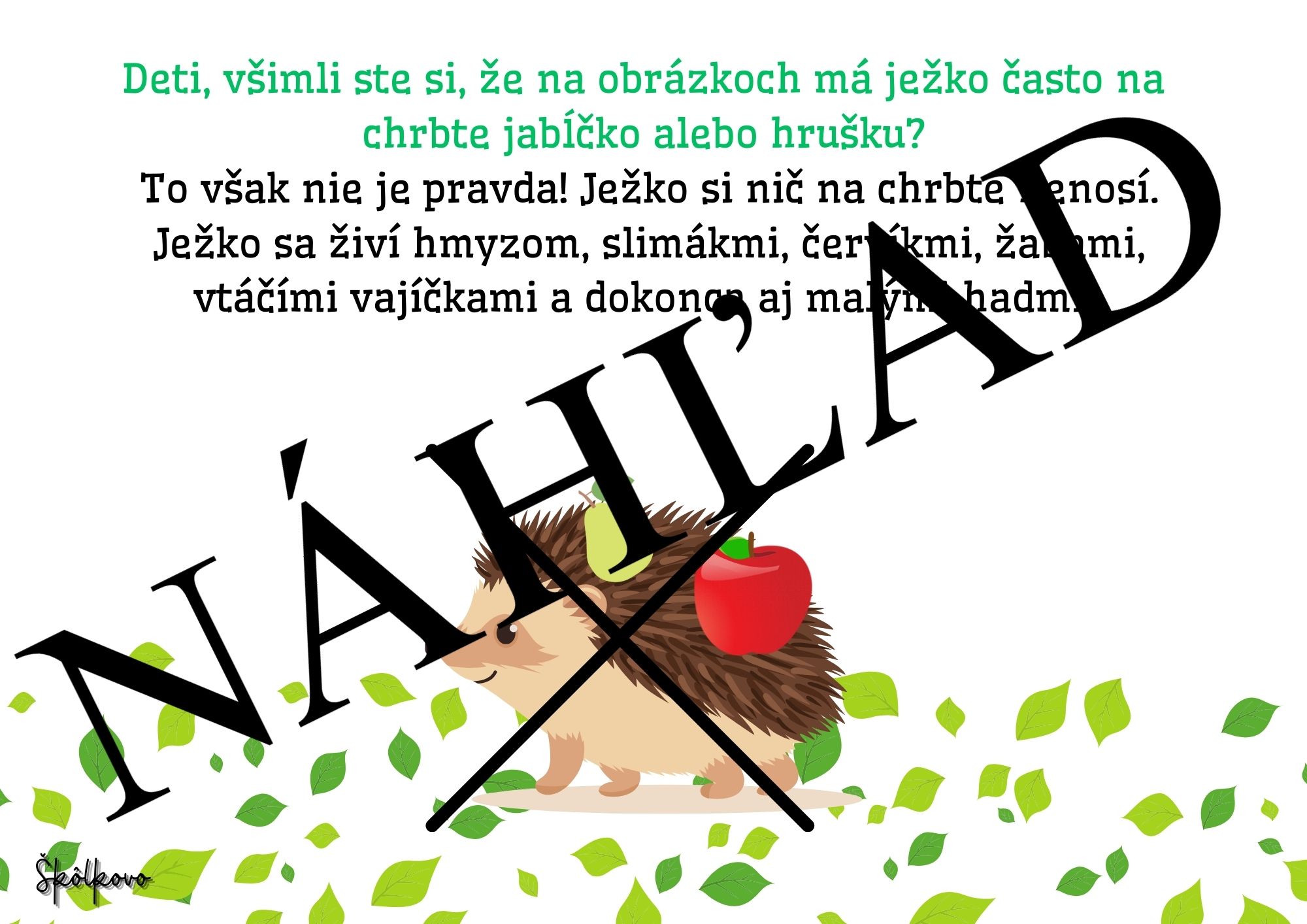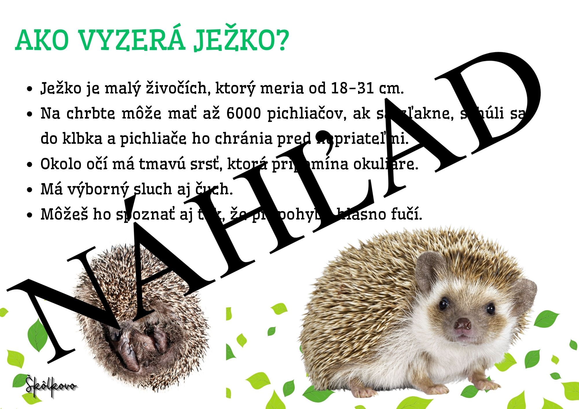 Ježko je malé, zaujímavé zvieratko, ktoré deti poznajú z rozprávok, kníh i obrázkov. Tento materiál je pripravený tak, aby deťom hravou formou priblížil život ježka, jeho vzhľad, správanie a zaujímavosti.