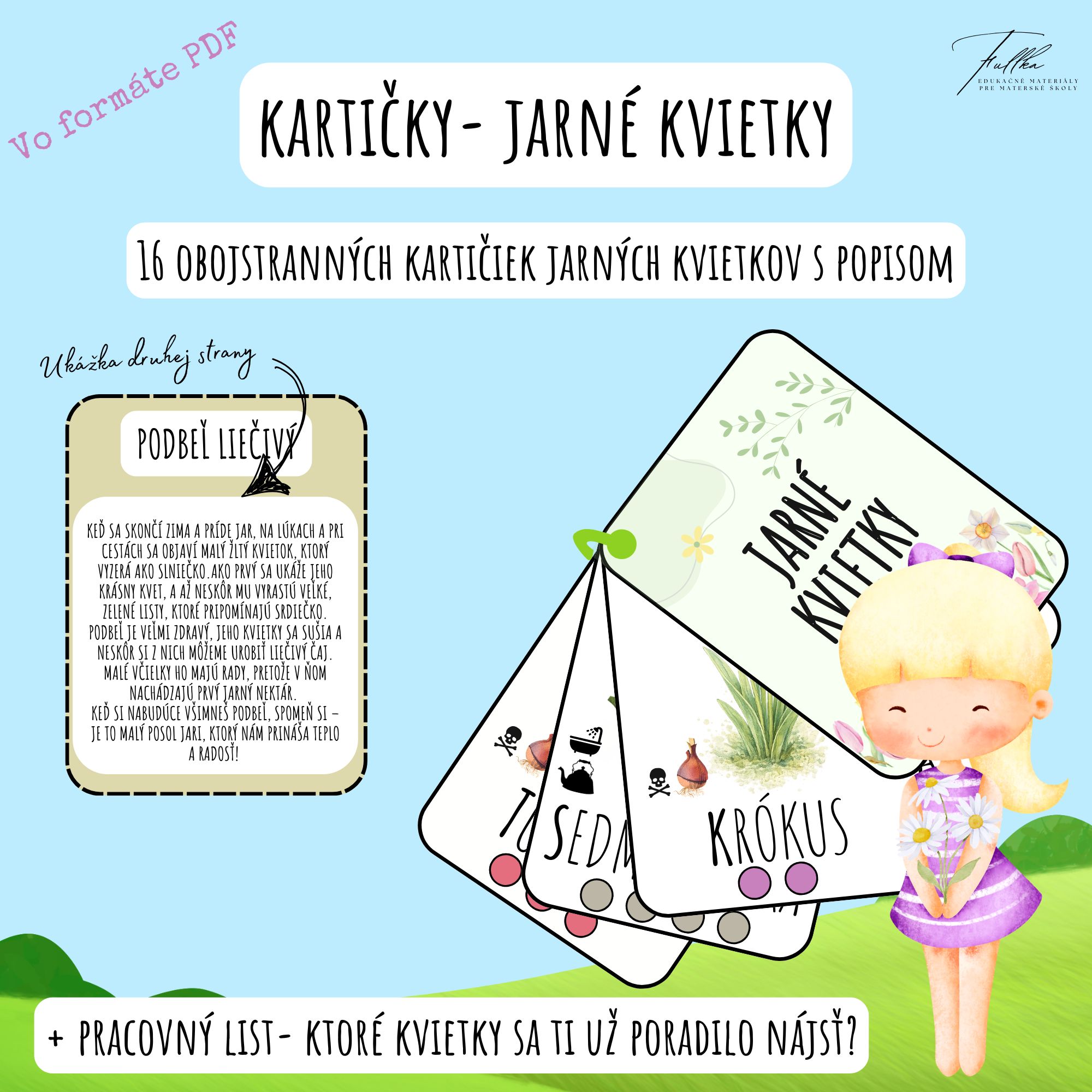 prichystala som si pre vás materiál zo série Kartičky na tému Jarné kvietky. Poďme si spolu spestriť pobyt vonku počas jari!