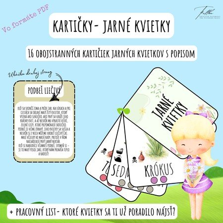 *16 kartičiek - 15 jarných kvetov s ich krátkym popisom z druhej strany;