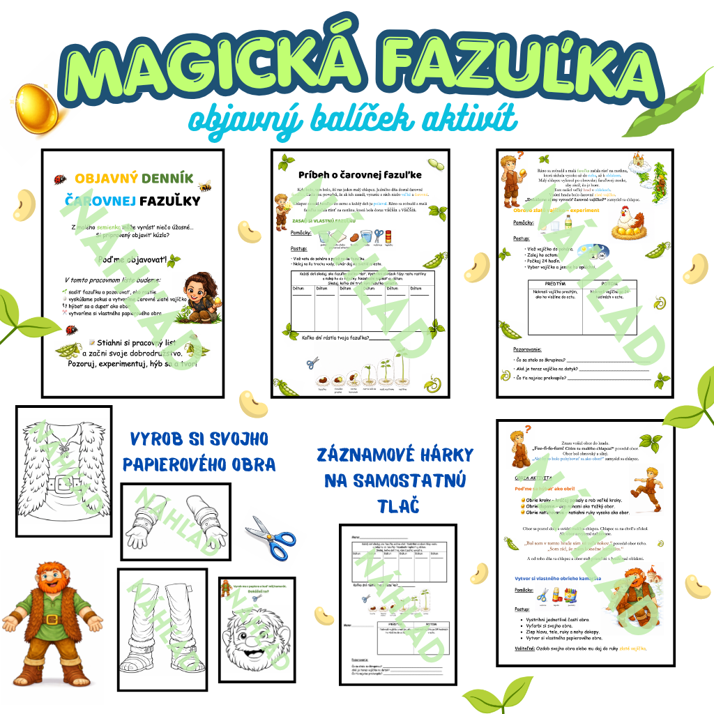 Hravý vzdelávací balíček, ktorý prevedie deti príbehom o čarovnej fazuľke a ponúkne im 4 prepojené aktivity. Deti budú objavovať, experimentovať, pohybovať sa a tvoriť – prirodzene a zážitkovo.