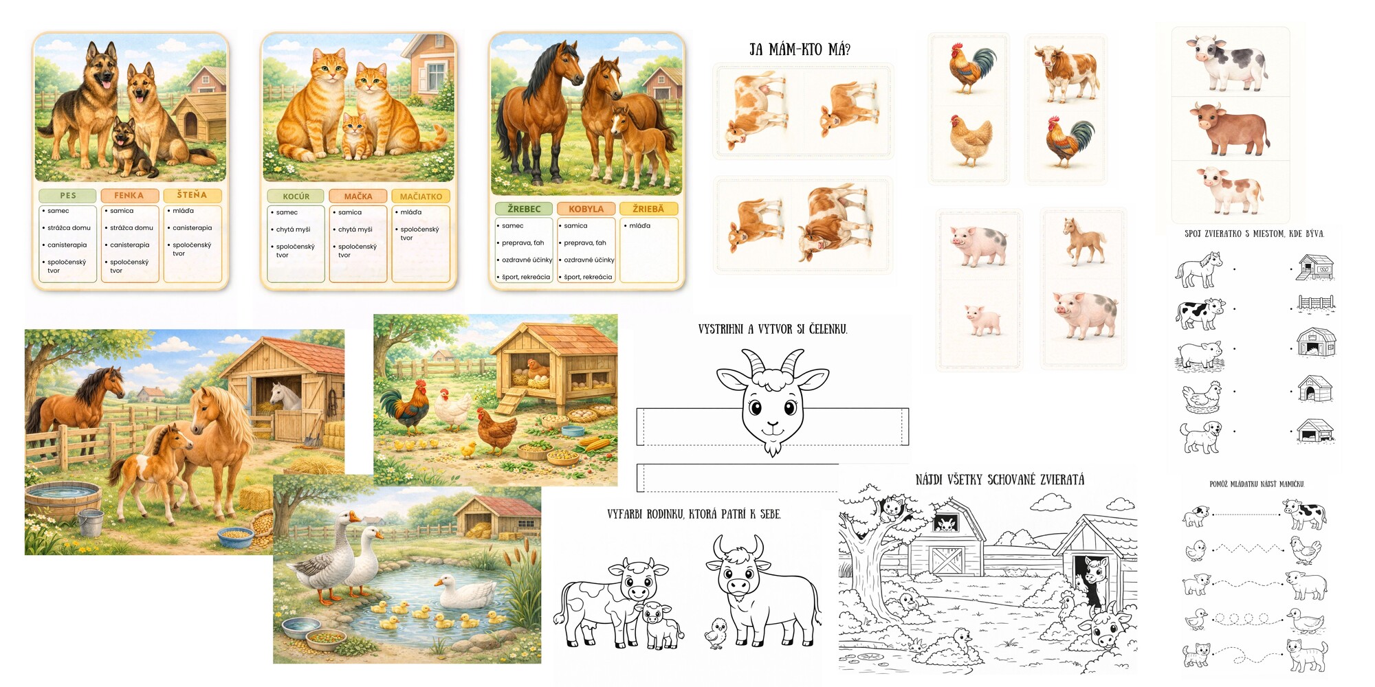 ✔️ kartičky zvierat (samec, samica, mláďa + čo nám dávajú)