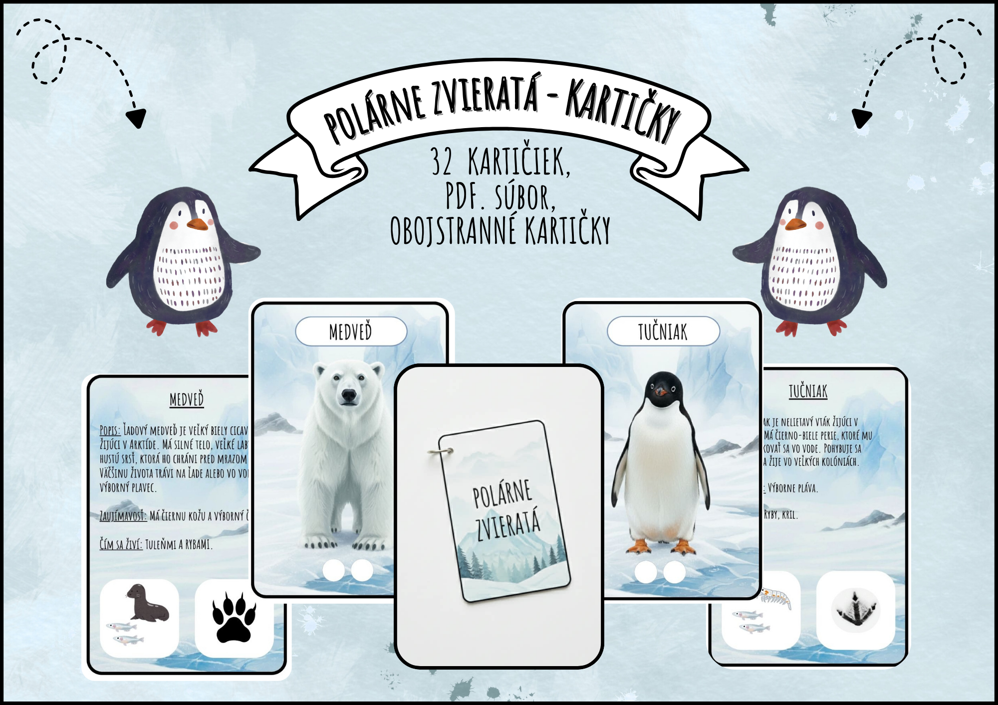 POLÁRNE ZVIERATÁ - OBOJSTRANNÉ KARTIČKY