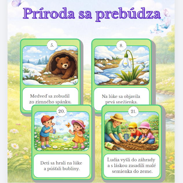 Príroda sa prebúdza 🪴- Obrázkový materiál o znakoch jari s 25 kartičkami.