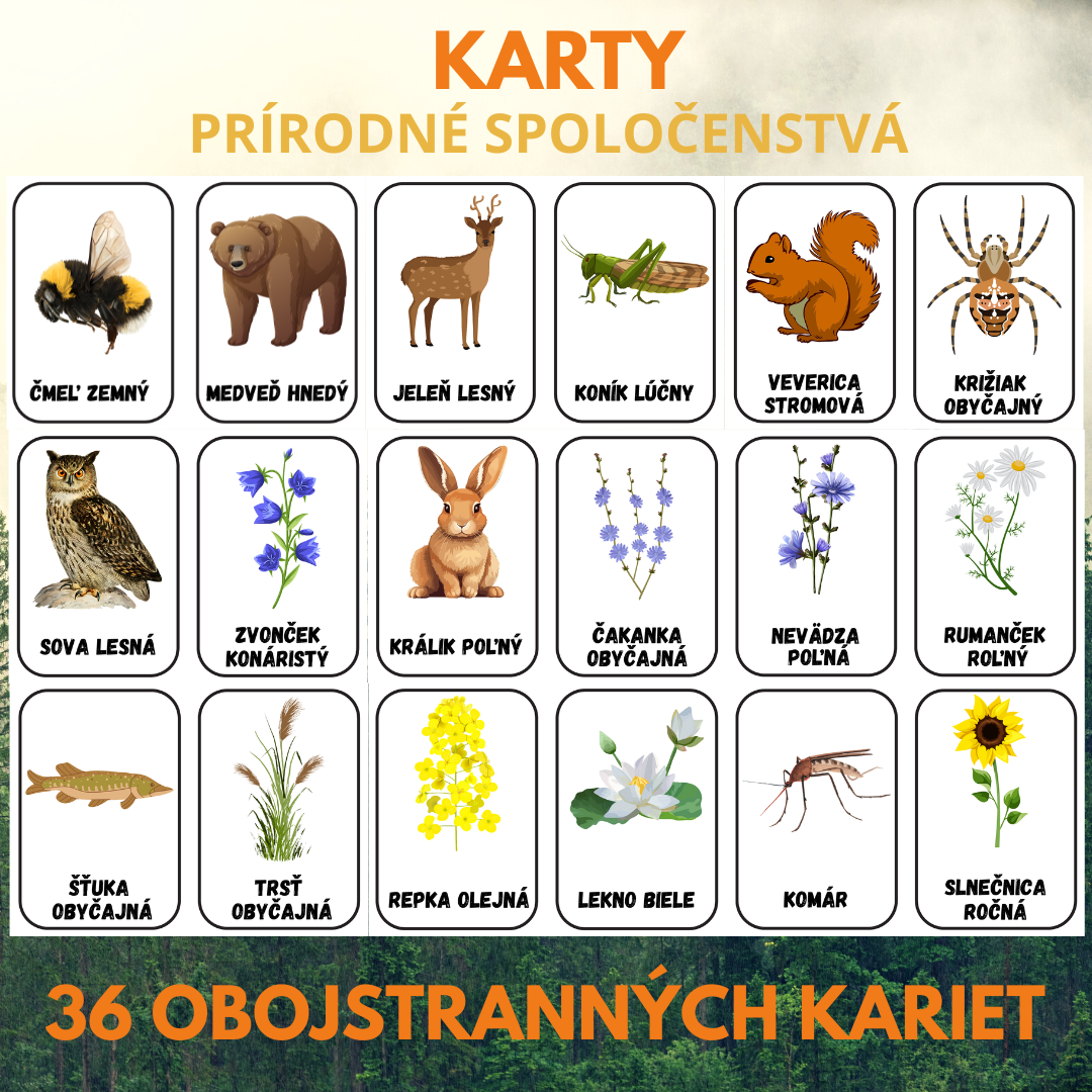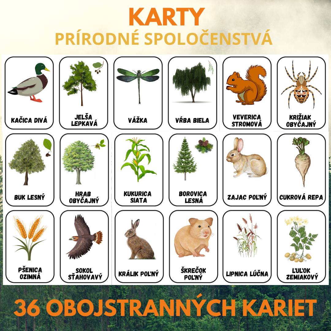 Karty využijete pri oboznamovaní sa s jednotlivými živočíchmi, rastlinami či stromami prírodných spoločenstiev v rámci demonštrácie.