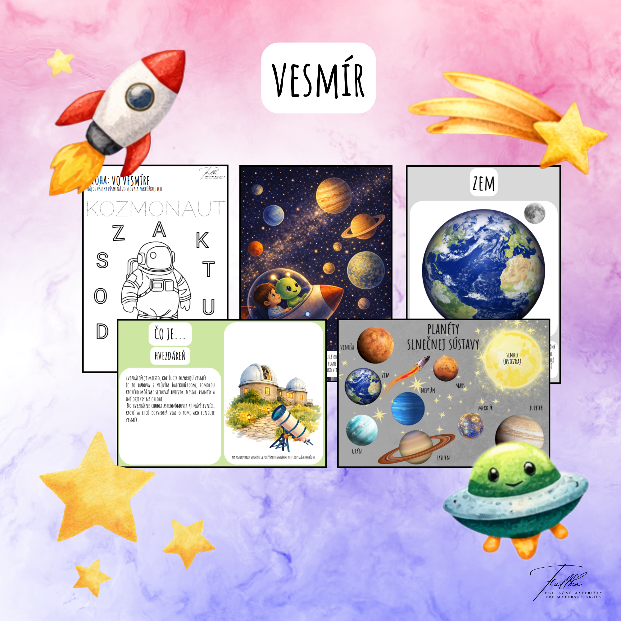 ponúkam PDF súbor VESMÍR, ktorý je vhodný k tematickému celku Naša Zem je guľatá, Vesmír, ...