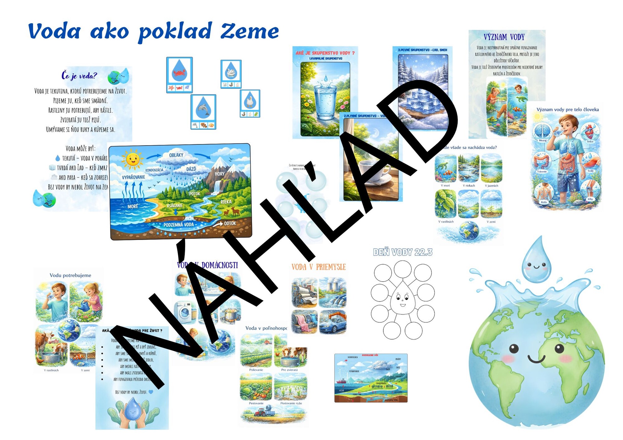 V súbore nájdete rôznorodý obrázkový a edukačný materiál zameraný na tému voda: