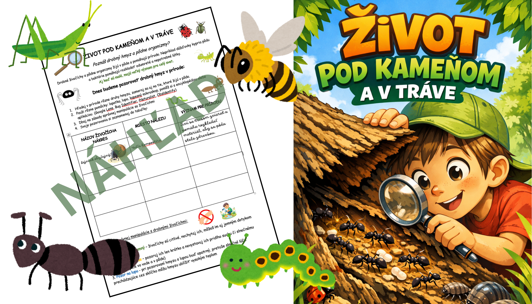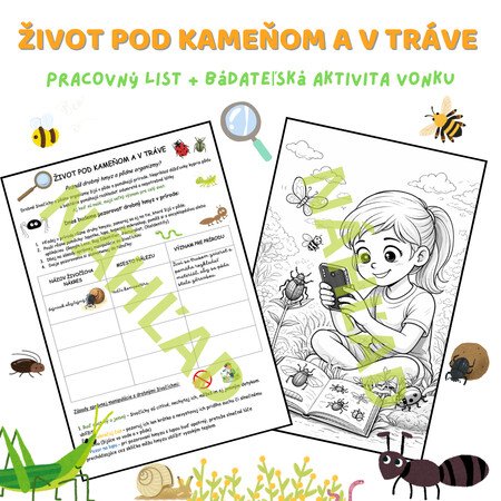 Tento zážitkový pracovný list vedie deti k objavovaniu skrytého života v prírode – pod kameňmi, v tráve a v pôde.