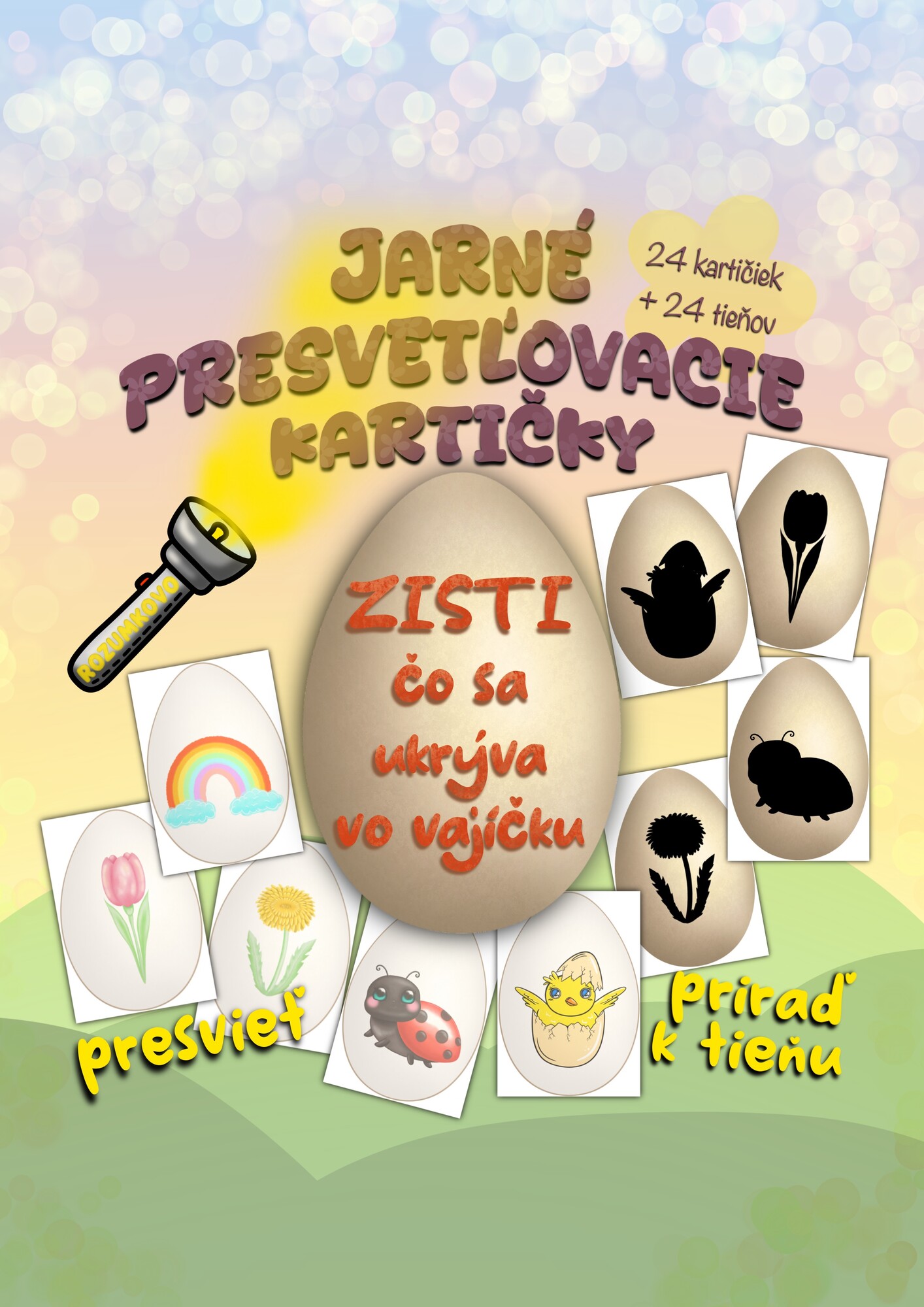 Súbor obsahuje všetky potrebné komponenty na prípravu PRESVETĽOVACÍCH KARTIČIEK - VAJÍČOK s priraďovaním k tieňom: