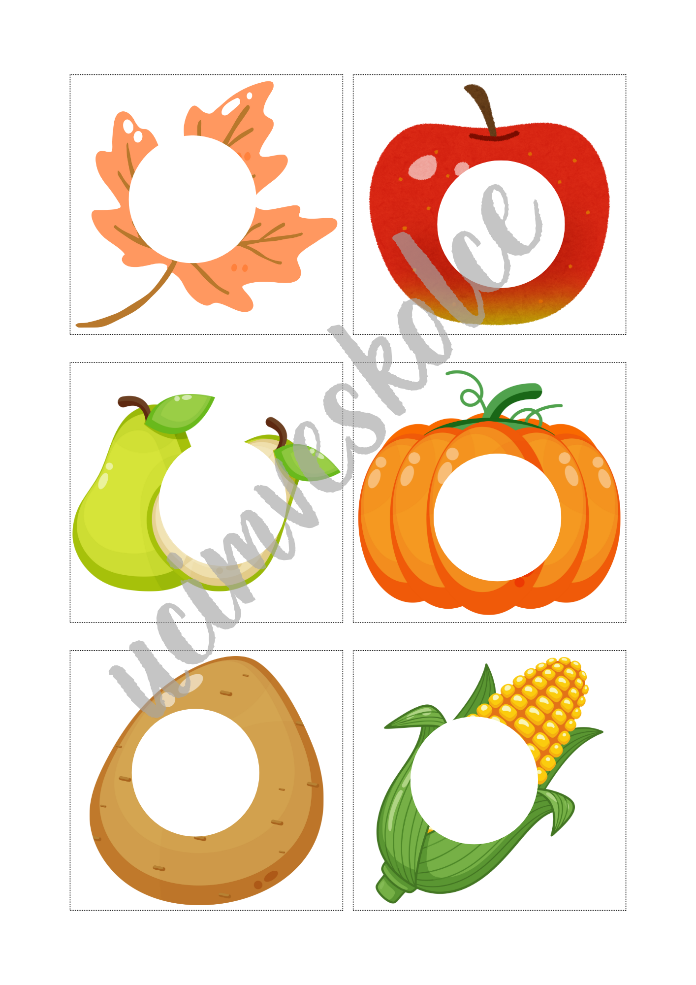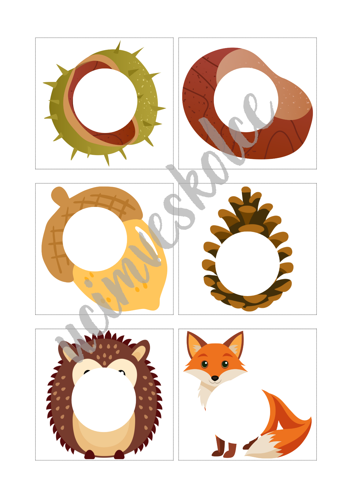Môžete tiež vytlačiť a zalaminovať celé listy s rámčekmi s obrázkami a zalaminovať iba malé kruhové kartičky. V tomto prípade deti dostanú celý list so 6 obrázkami a budú na prázdne miesta prikladať správne kruhové kartičky.