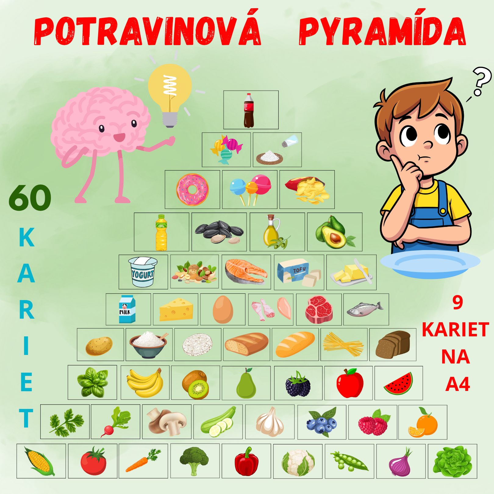 Žiaci z kartičiek vytvoria potravinovú pyramídu, pomenujú každú potravinu. Spoločne s učiteľom diskutujú o tom, prečo je daná potravina v pyramíde na tom, ktorom mieste. To, ako by mohla potravinová pyramída vyzerať je súčasťou tohto súboru.