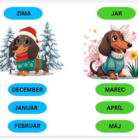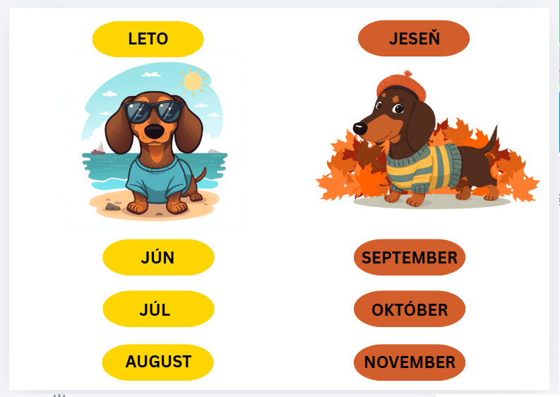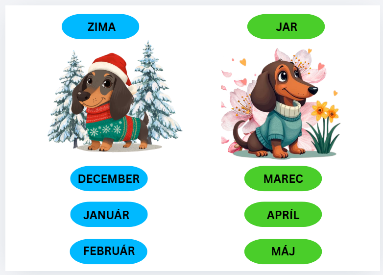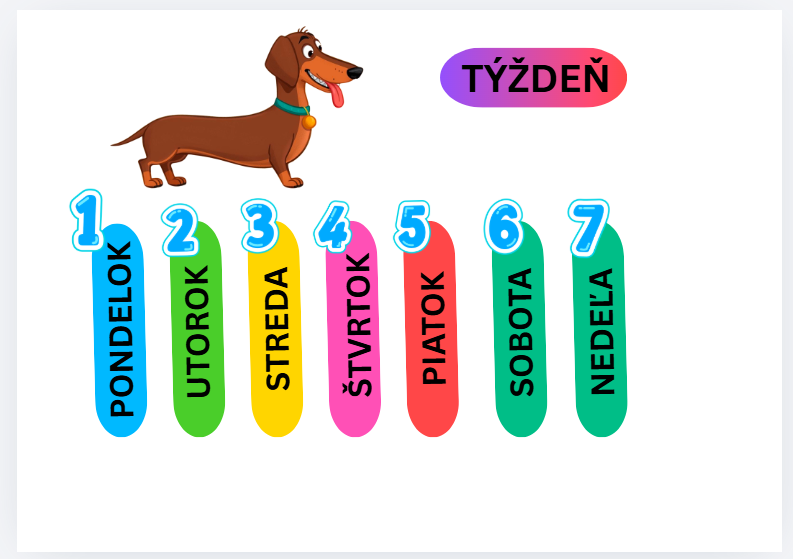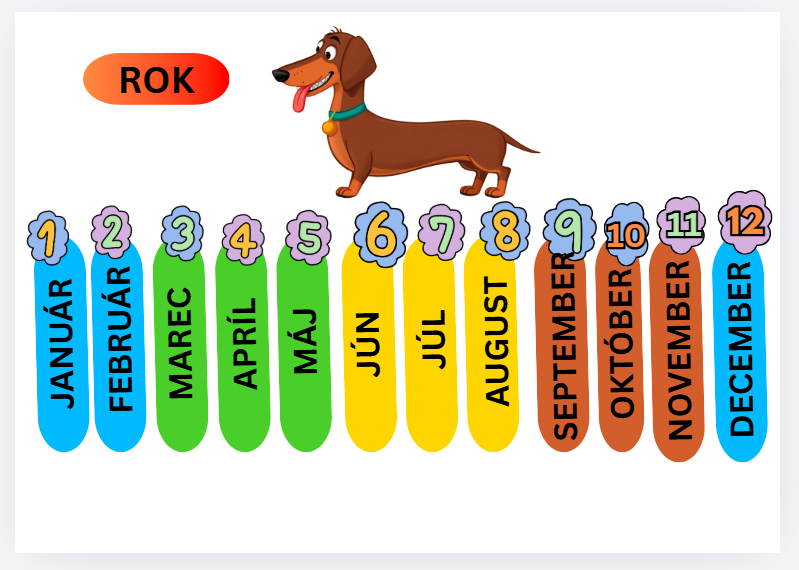 Materiál sa dá zalaminovať, rozstrihať, deti môžu zoraďovať, čísla, dni, mesiace, učia sa poznávať písmenká - celú dobu ich sprevádza psíček rok - v sezónnom oblečení. :)