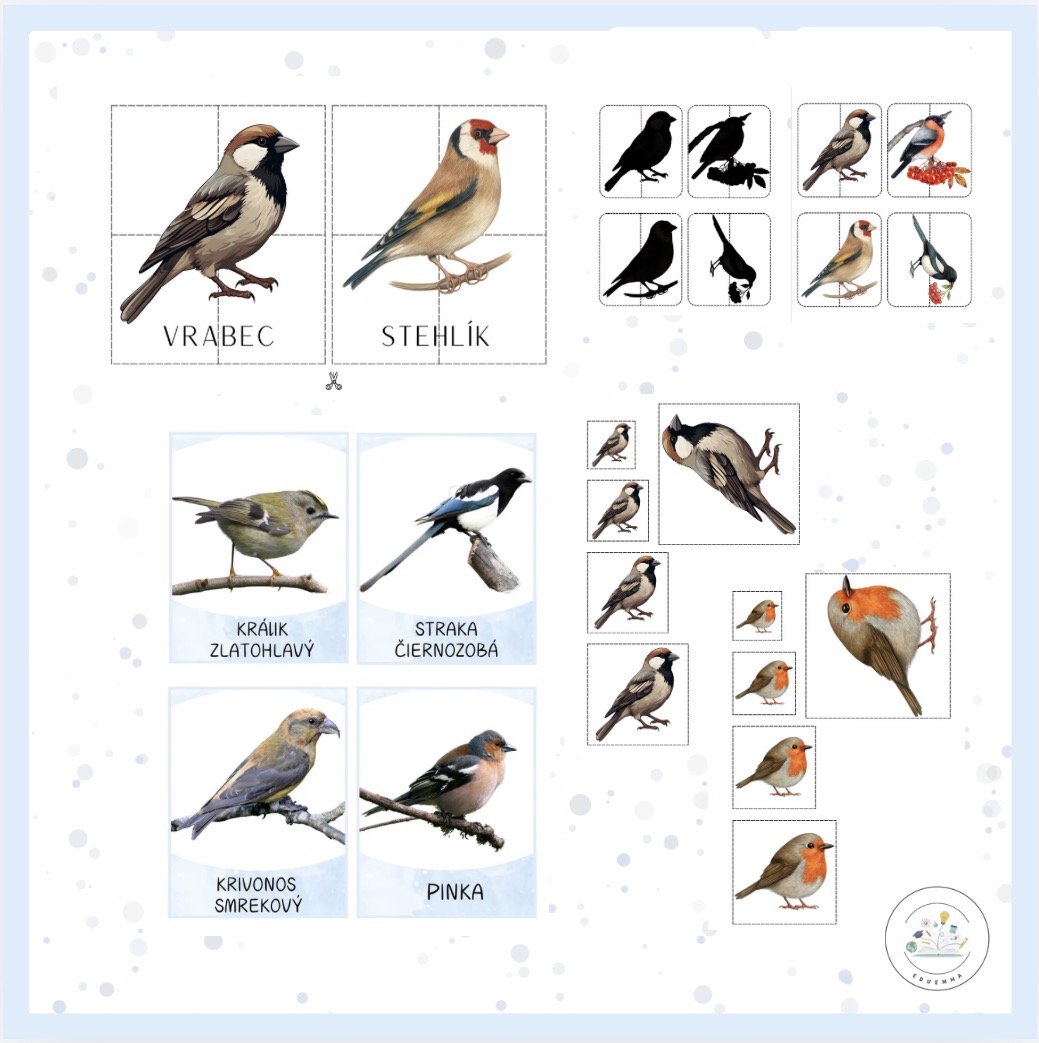 ďalej sa v súbore nachádzajú aktivty, ktoré pomahajú deťom lepšie si zapamätať samostných vtáčikov a ich podobu: