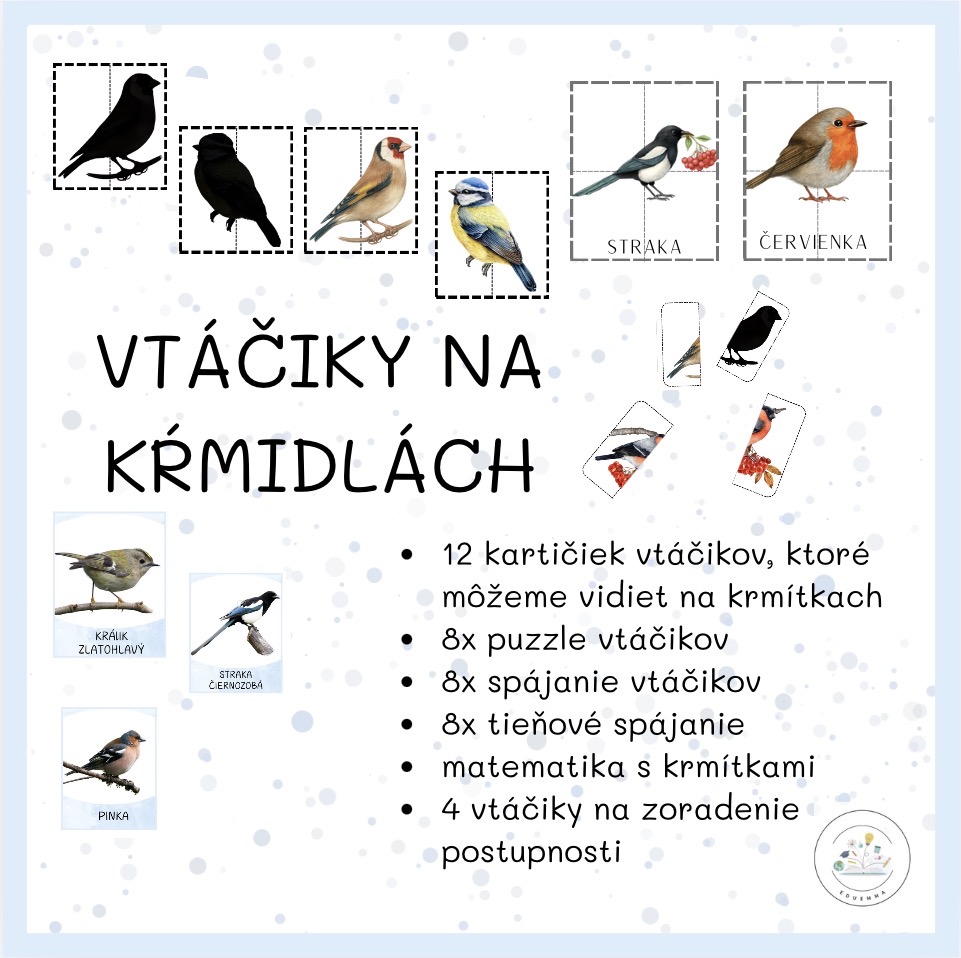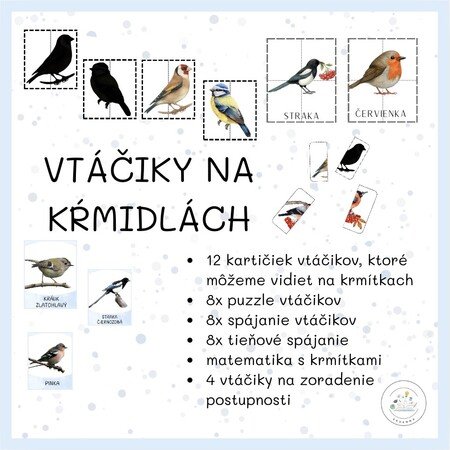 ponúkam Vám súbor, ktorý obsahuje dvanásť vybraných vtákov, ktoré môžeme v zime vidieť na kŕmidlách