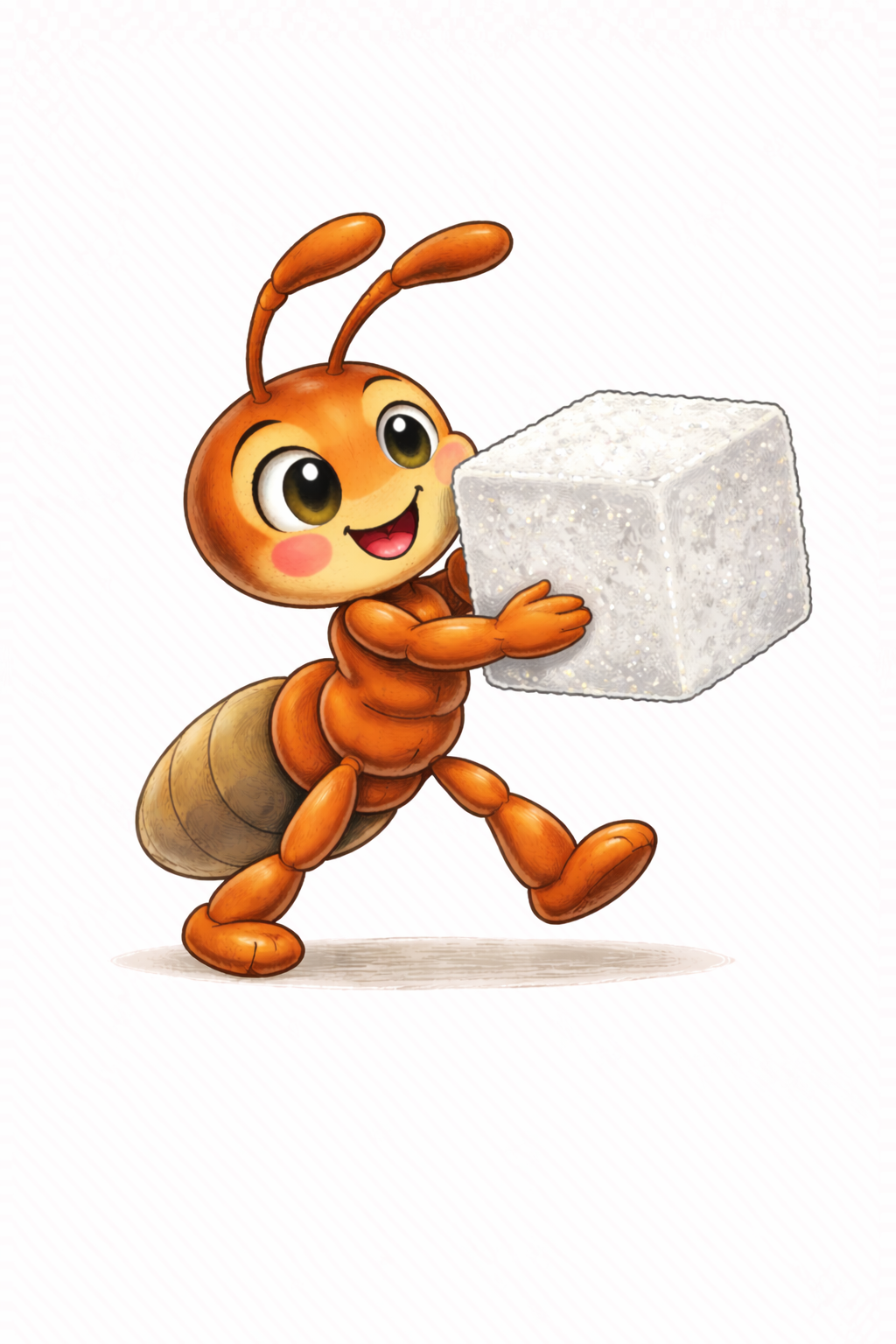 a 29 listov je jednostranných. Obrázky na seba nadväzujú a vytvárajú hravú scénu – mravce v rôznych činnostiach, pohyboch a náladách.
