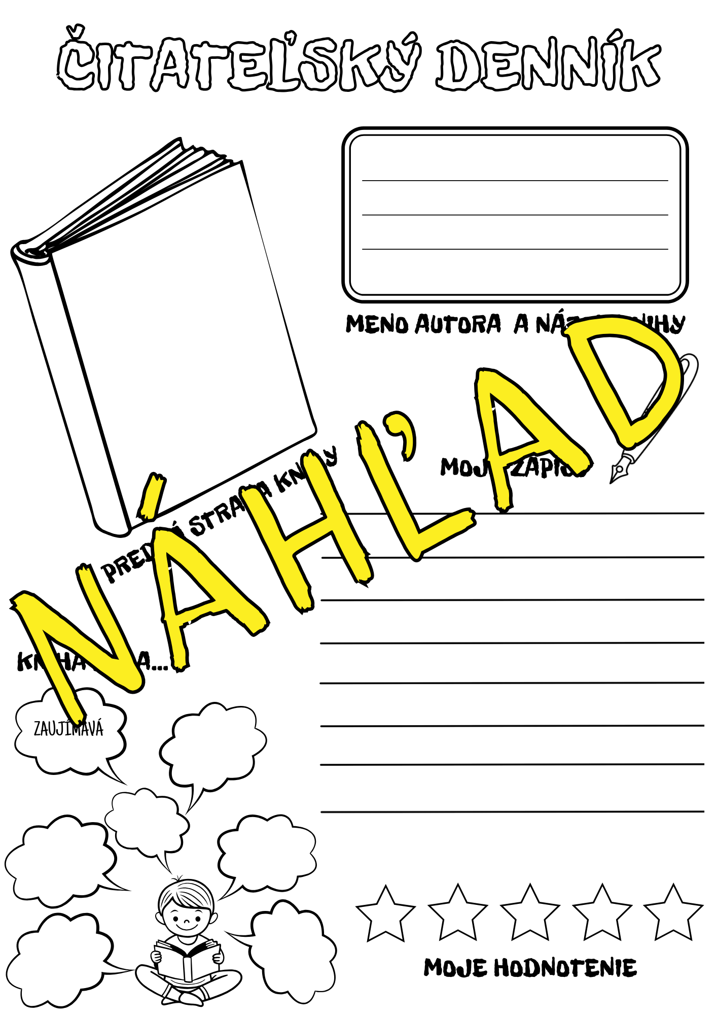 Materiál je spracovaný v čiernobielej verzii, aby si ho deti mohli samé dotvoriť – vymaľovať, dokresliť a prispôsobiť podľa vlastnej fantázie. Takto sa stáva nielen záznamom o prečítanej knihe, ale aj osobnou tvorbou žiaka, ktorá podporuje jeho vzťah k čítaniu a motivuje k ďalšej práci s knihou.