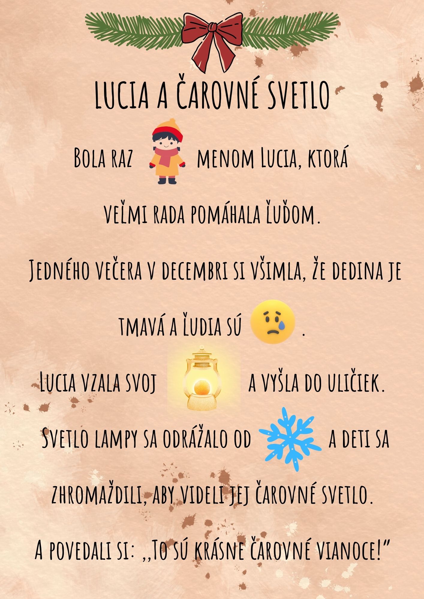Materiál je určený na spoločné čítanie, rozhovor a tvorivé aktivity, aby deti spoznali slovenské vianočné tradície hravou a zrozumiteľnou formou.