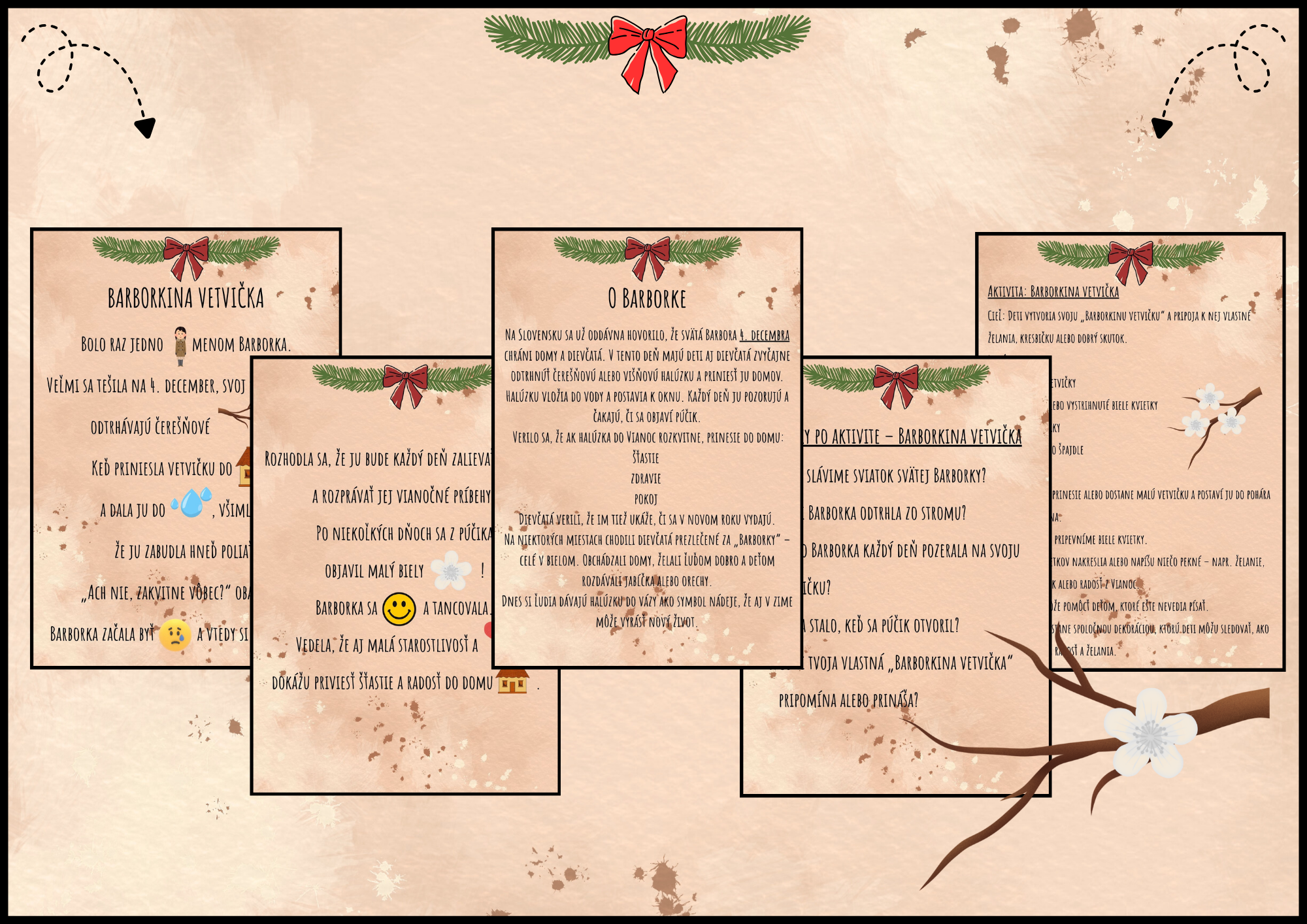 - Svätá Barborka: príbeh Barborky a vetvičky, tvorba kvietkov alebo kreslenie vetvičky.