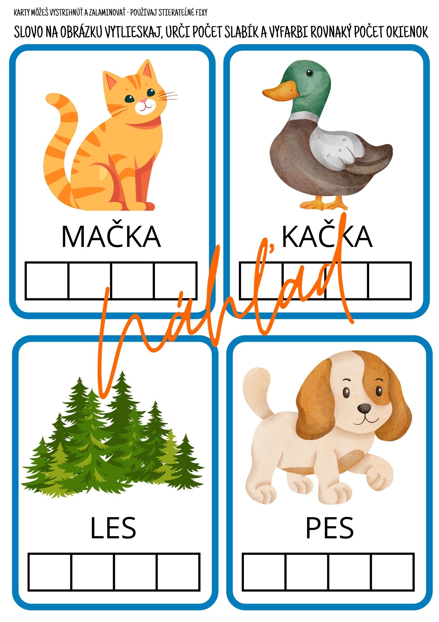 - úloha na určovanie počtu slabík