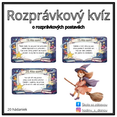 Rozdáme im odpoveďový hárok. Učiteľka číta hádanky a úlohou žiakov je, aby správnu rozprávkovú postavu napísali na daný hárok.