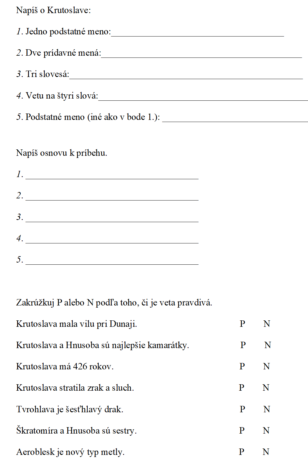 - jednotlivé úlohy je možné vypracovať písomne alebo môže byť aj ústnou formou, podľa individuálnych schopností detí