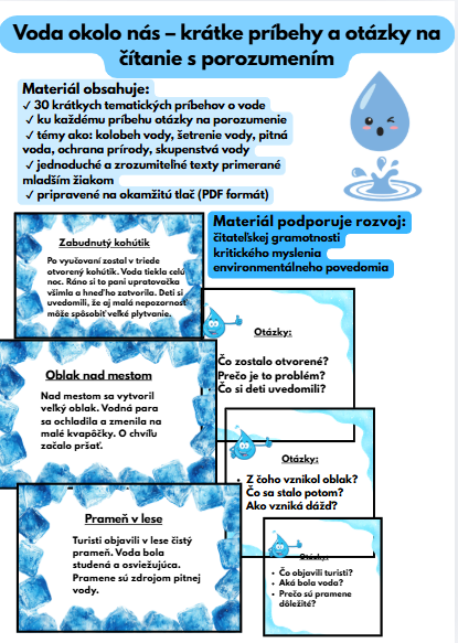 Žiaci si prostredníctvom príbehov upevňujú čitateľskú gramotnosť, rozvíjajú kritické myslenie a zároveň si budujú pozitívny vzťah k ochrane vody.