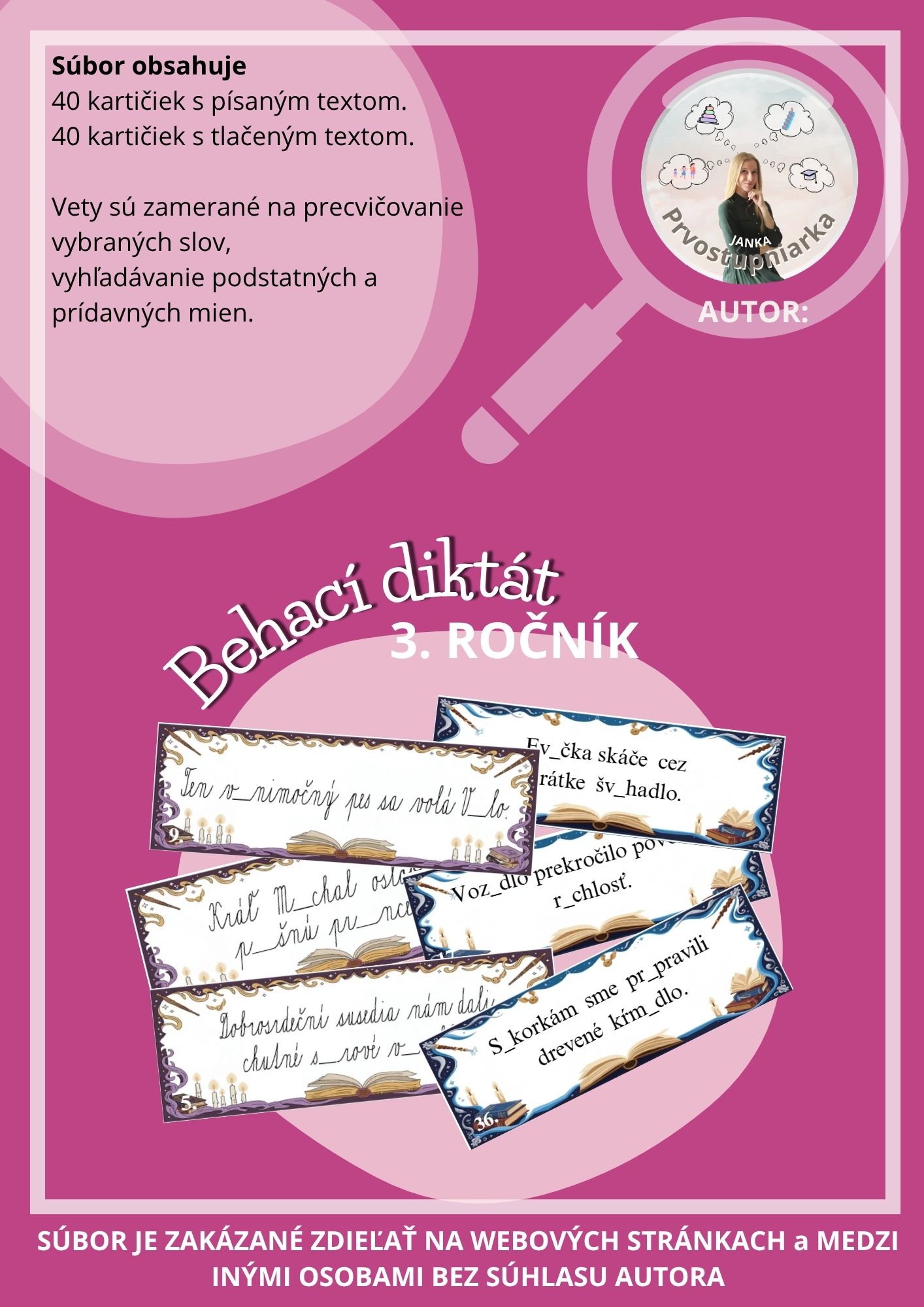 40 kartičiek s písaným textom. 40 kartičiek s tlačeným textom.