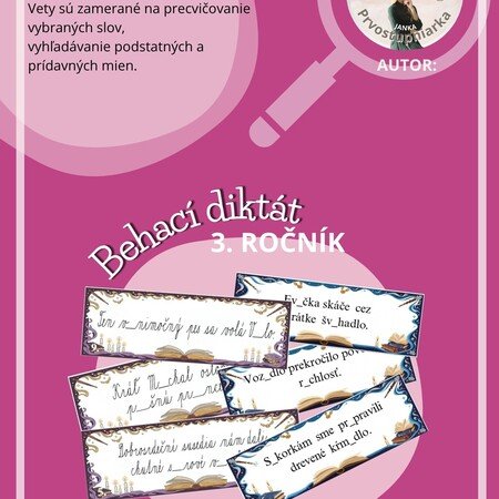 Vety sú zamerané na precvičovanie vybraných slov, vyhľadávanie podstatných a prídavných mien.