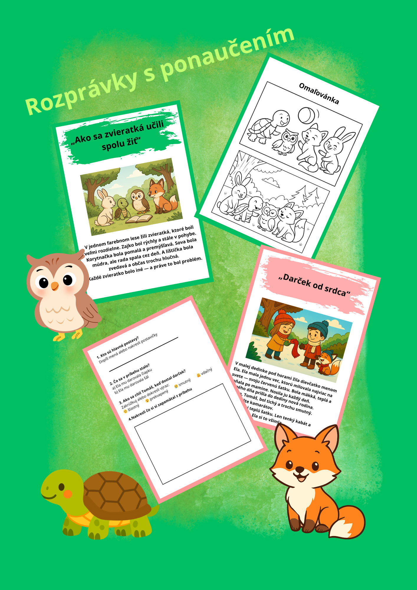 tolerancii a štedrosti. Za každým príbehom je pracovný list a omaľovánka.